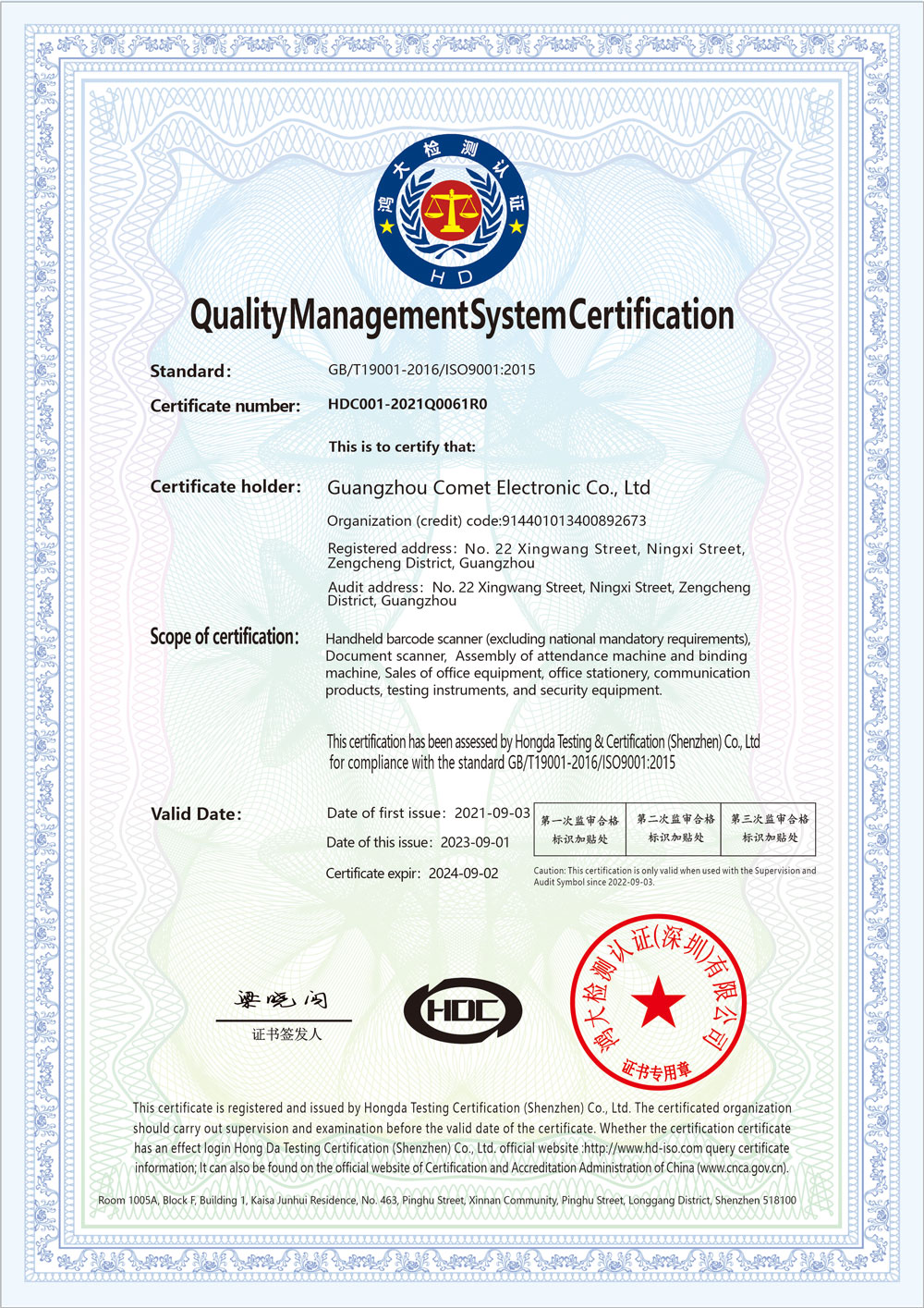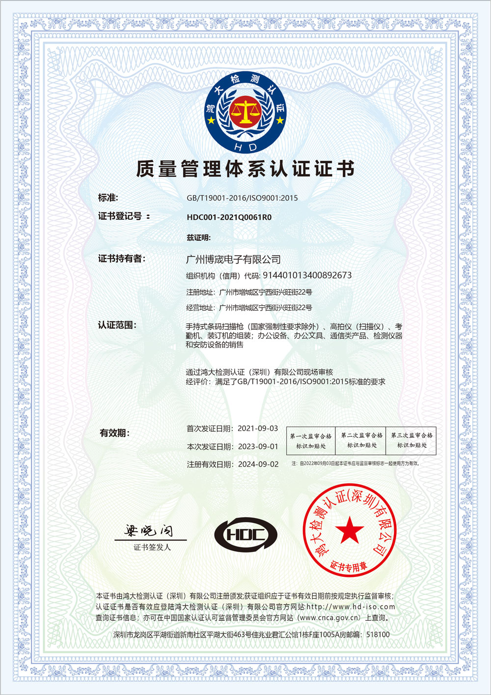 質(zhì)量管理體系認(rèn)證證書(shū)
