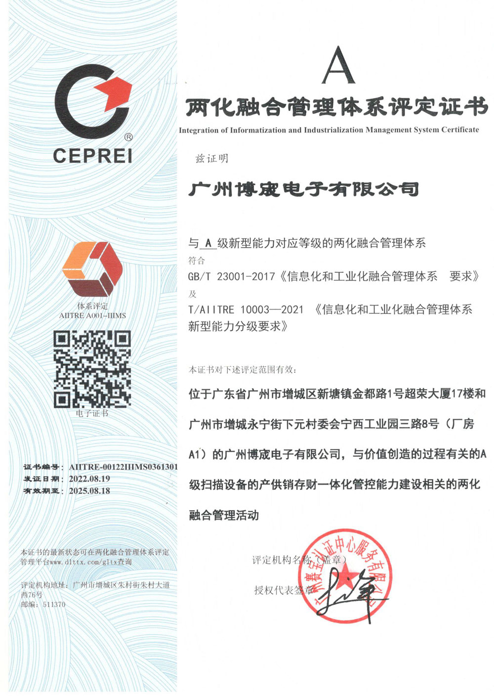 兩化融合管理體系證書(shū)