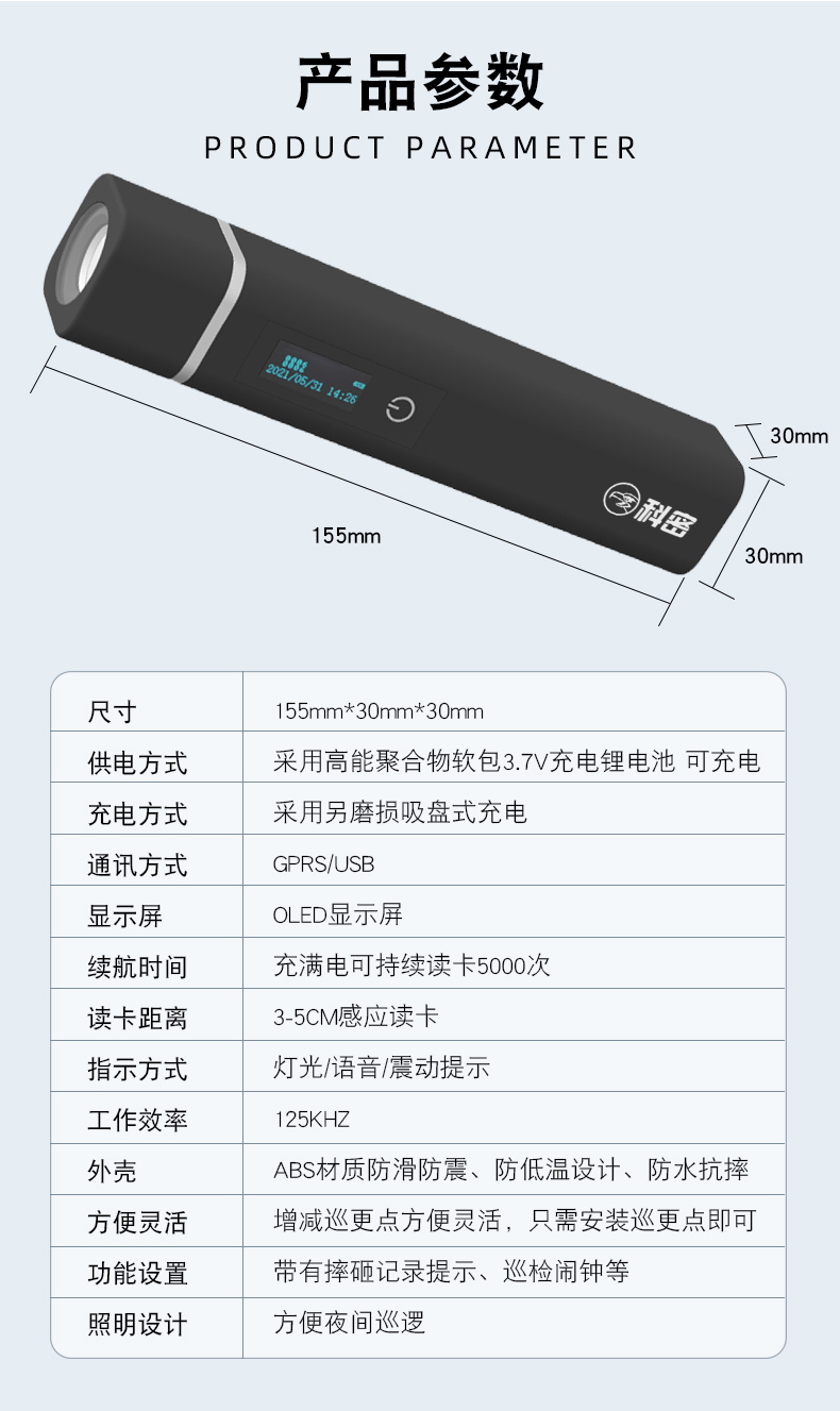 科密CX07 強(qiáng)光照明巡更棒 電子巡更系統(tǒng) 保安巡邏機(jī)巡更器(配15個巡更點(diǎn)+5個人員扣)