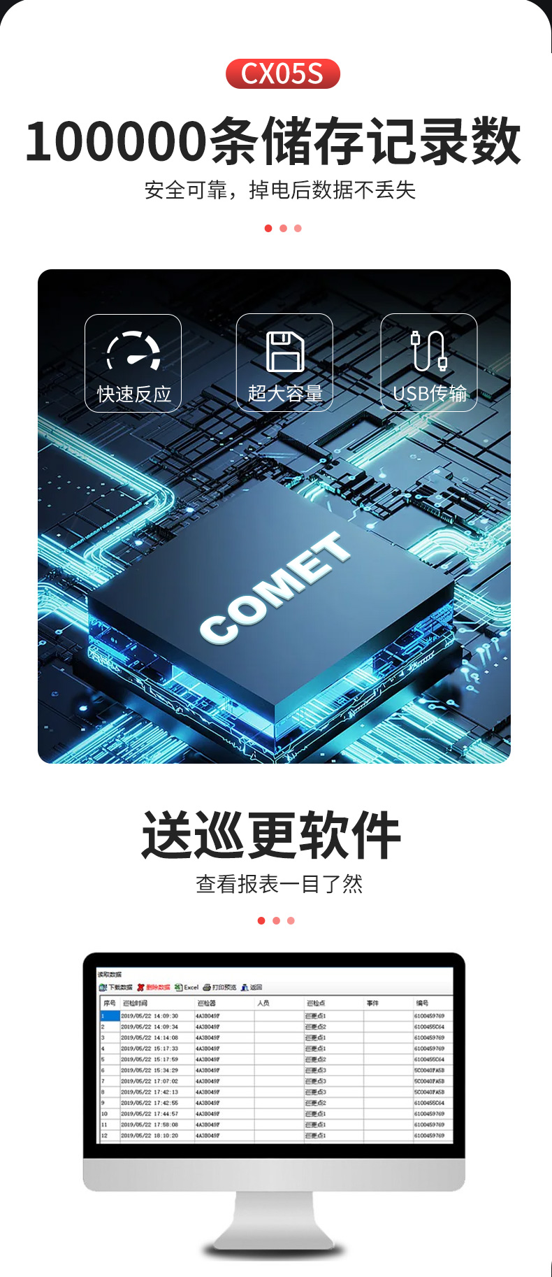 科密CX05S 強(qiáng)光照明巡更棒 保安巡邏機(jī)打點(diǎn)機(jī) 電子巡更系統(tǒng)巡更機(jī)(配10個(gè)巡更點(diǎn)+5個(gè)人員扣)