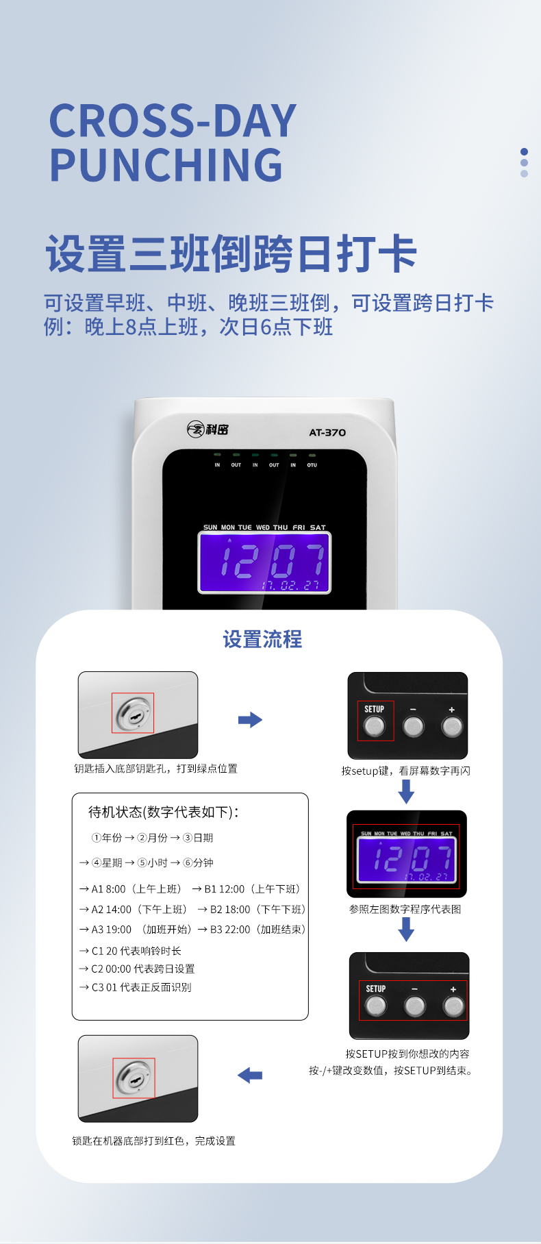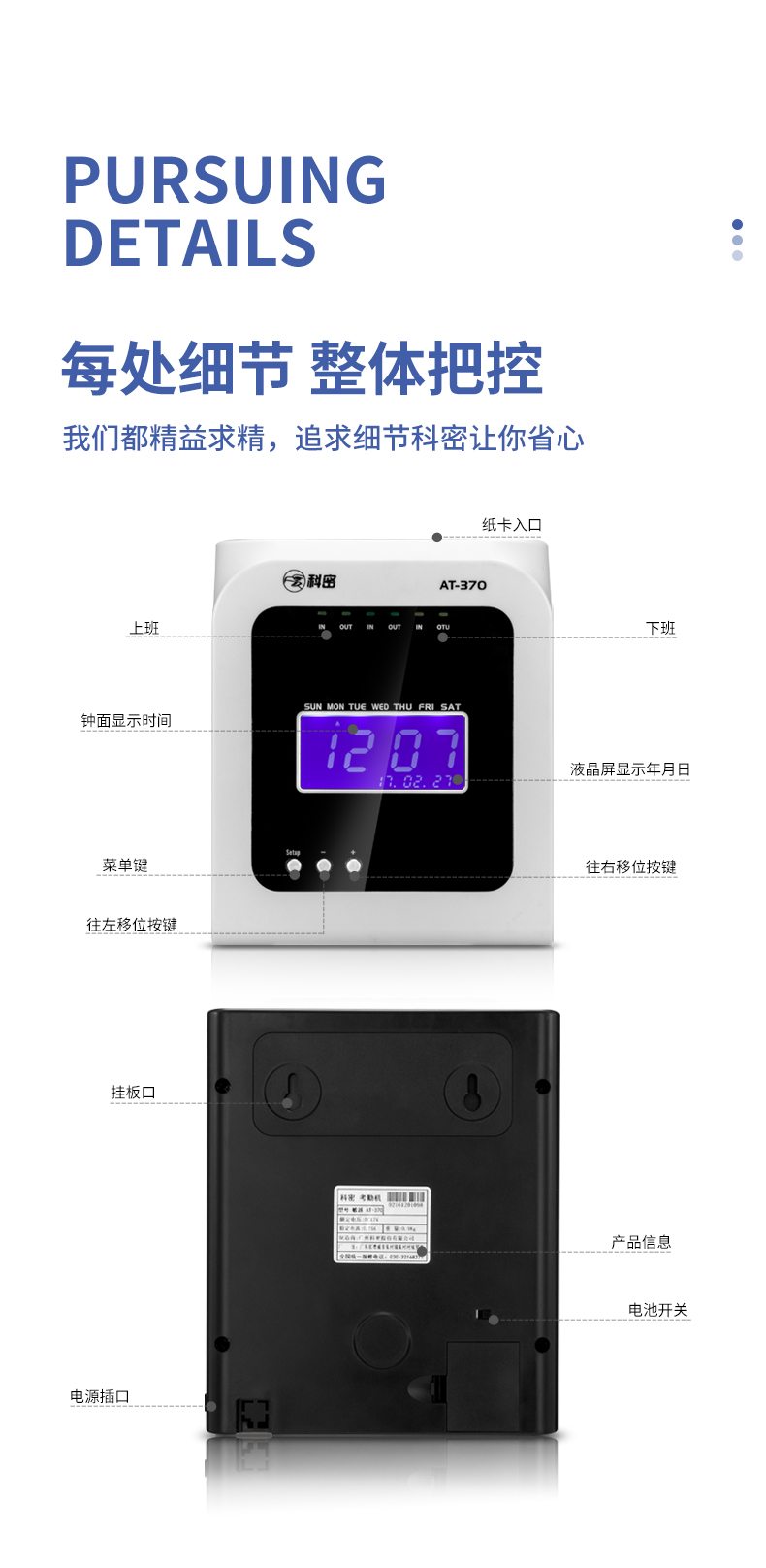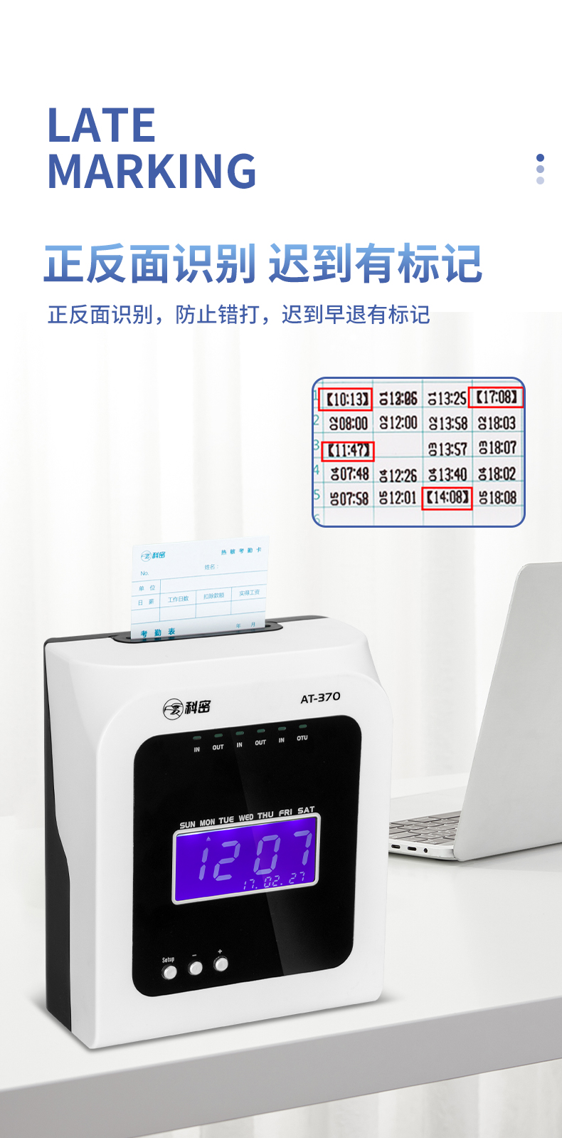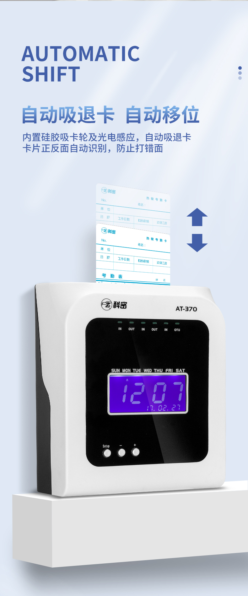 科密熱敏打卡機紙卡式卡片考勤機卡紙打卡機員工上下班出勤工廠工地企業簽到鐘打卡鐘插卡式AT370