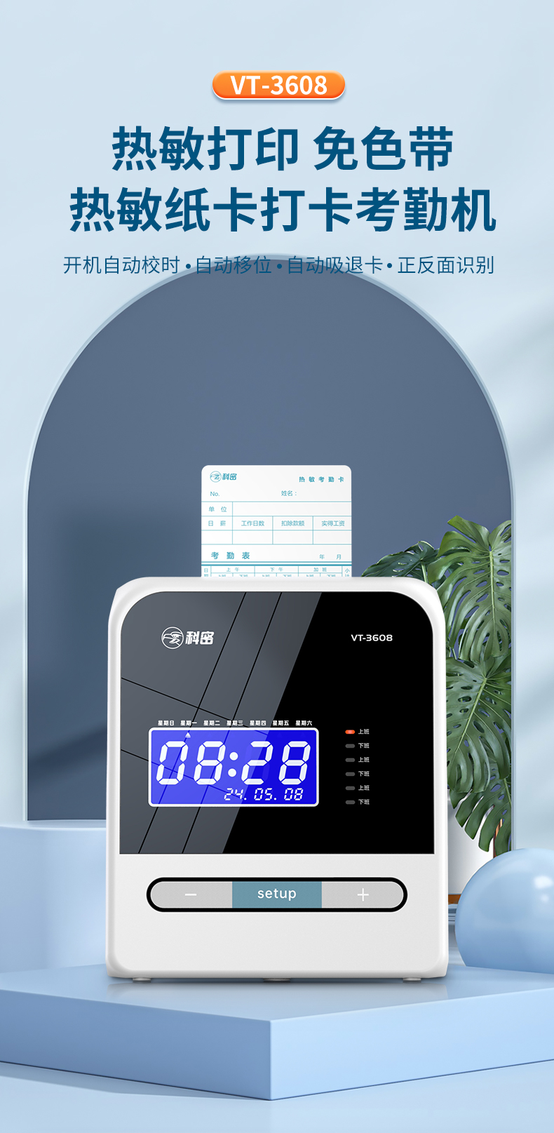 科密(comet) VT-3608 打卡機考勤機卡鐘 微電腦考勤機 熱敏卡紙免色帶打卡機打卡鐘 自動移位