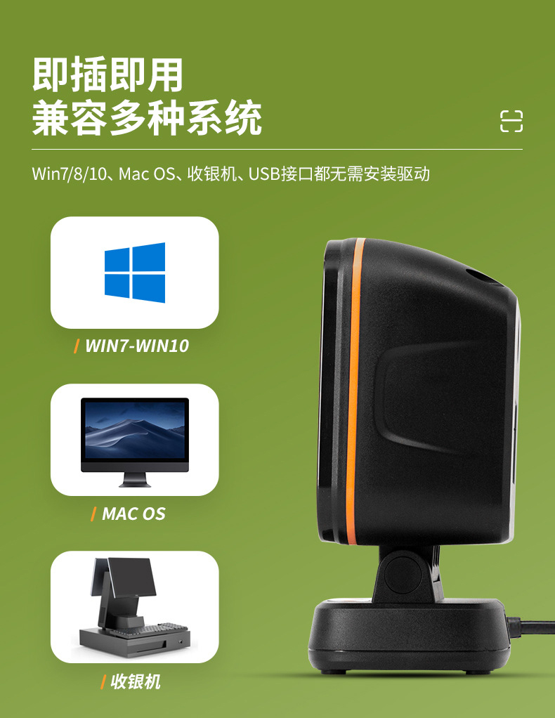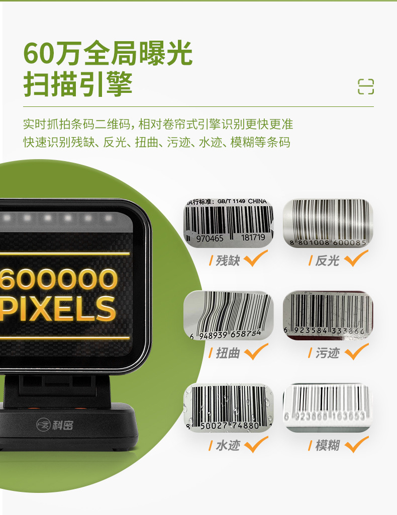 科密商用收款掃碼機一體機快速通用掃描槍一維二維碼支付收銀掃碼槍