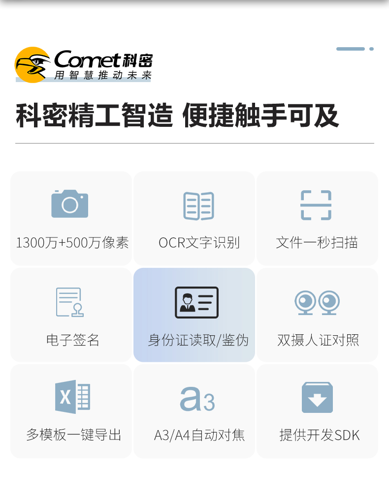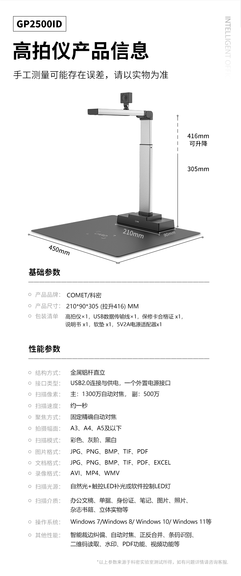 科密(comet) GP2500ID 高拍儀 1300萬+500萬像素 身份證閱讀器識別儀 文件資料掃描儀 支持國產系統定制