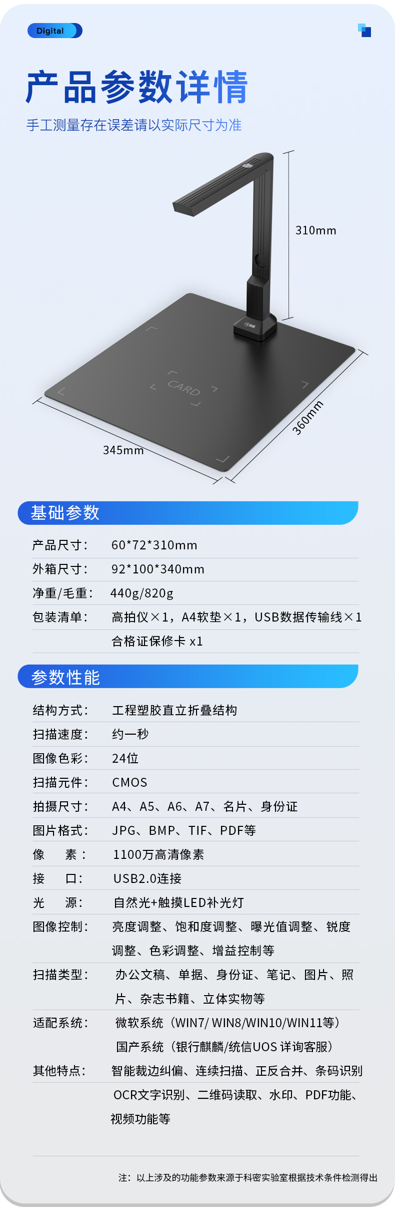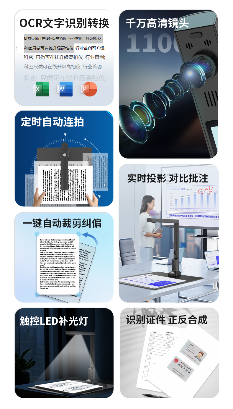 科密(comet) GP-500 高拍儀 1100萬像素 可在線升級掃描儀 A4文件PDF合成 OCR文字識別 適配國產(chǎn)系統(tǒng)