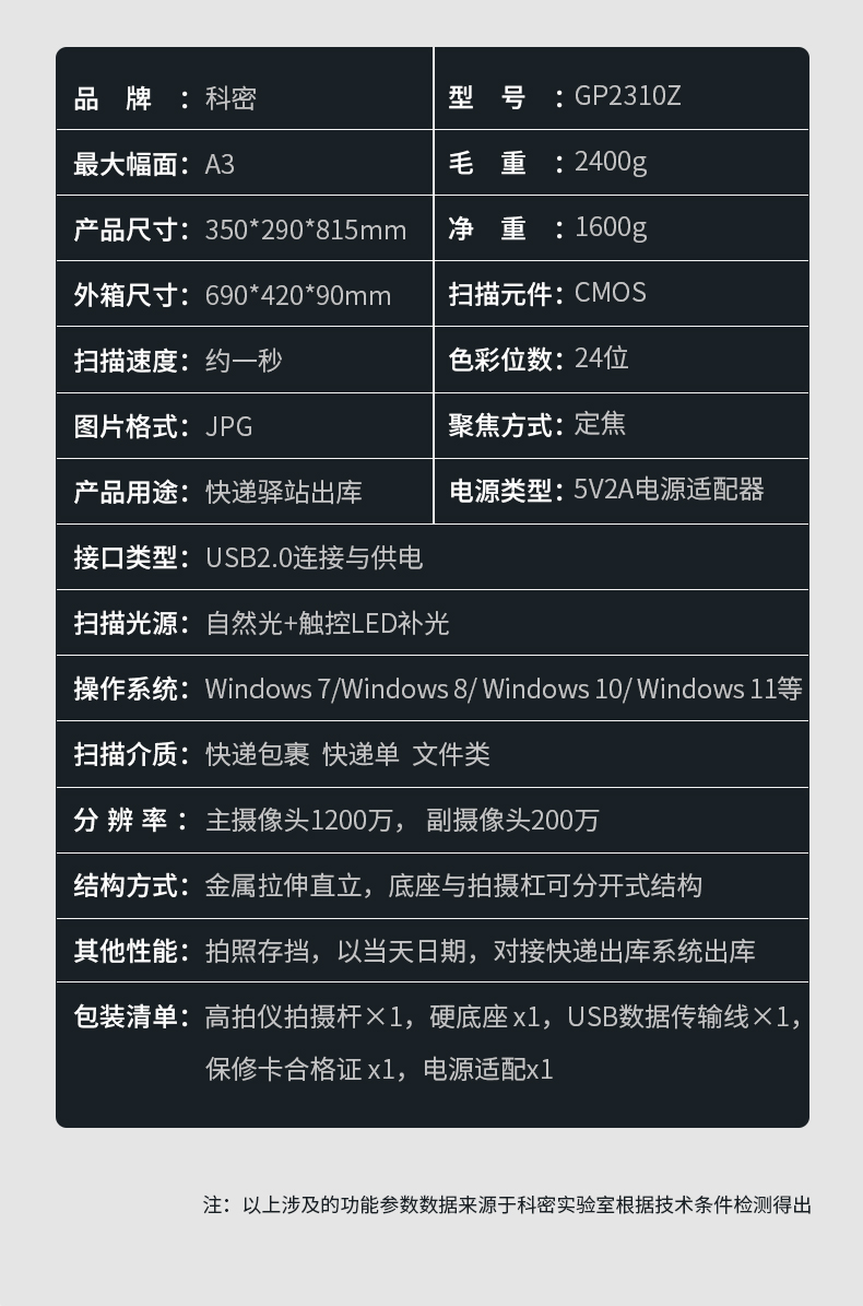 科密(comet) 快遞驛站出庫高拍儀一體機 多快遞對接 1200萬像素雙攝掃描儀 底單簽收自動拍照出庫儀 GP2310Z