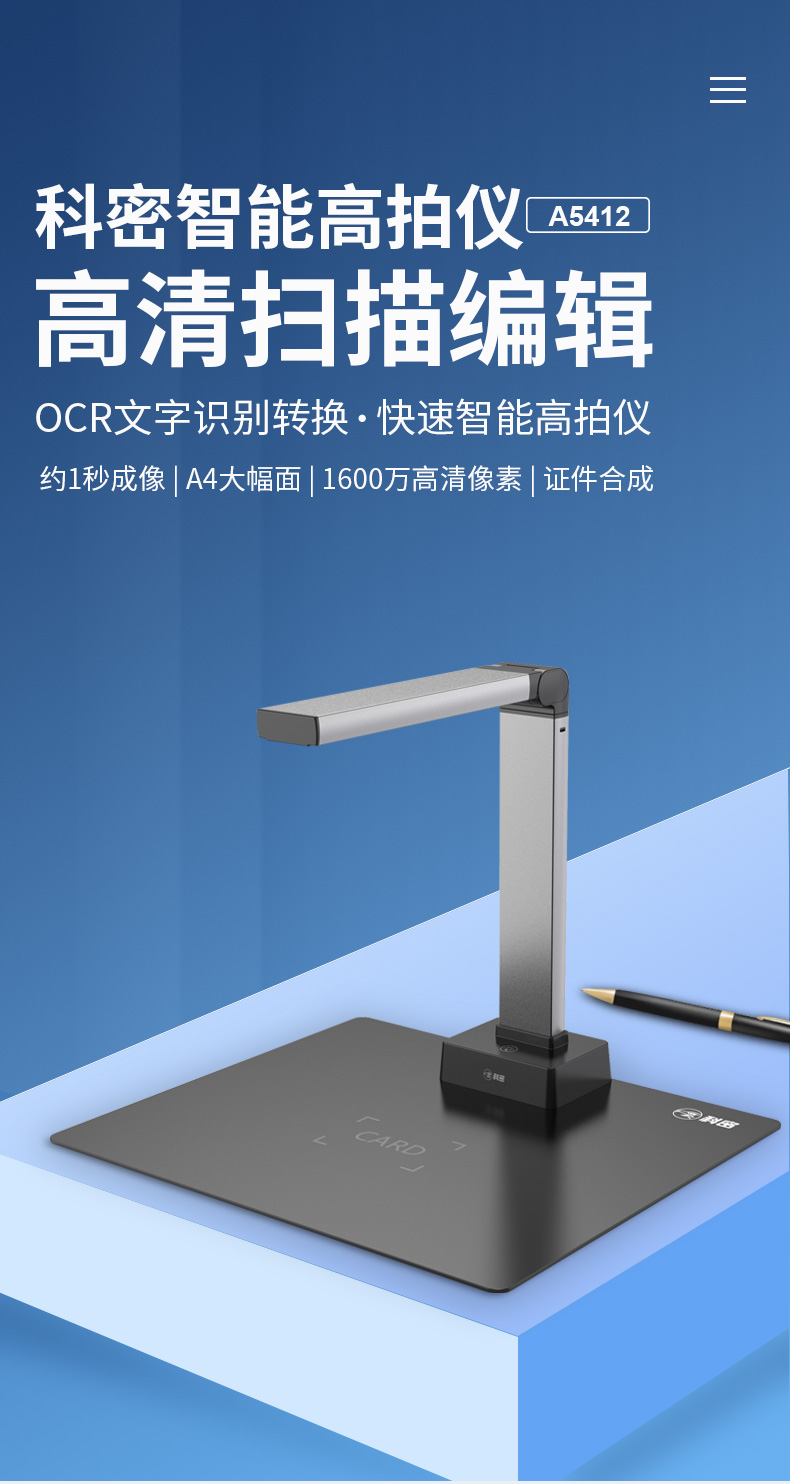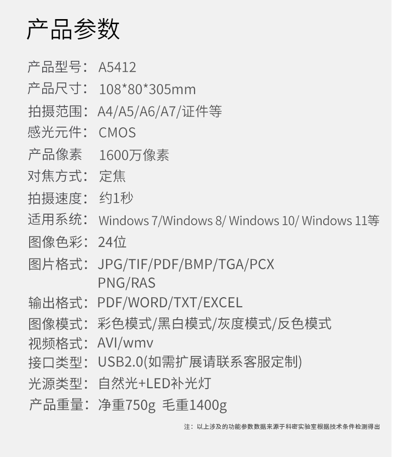 科密(comet) A5412 高拍儀 1600萬像素掃描儀 A4文件資料優(yōu)化 OCR識別 統(tǒng)信麒麟國產(chǎn)系統(tǒng)二次開發(fā)