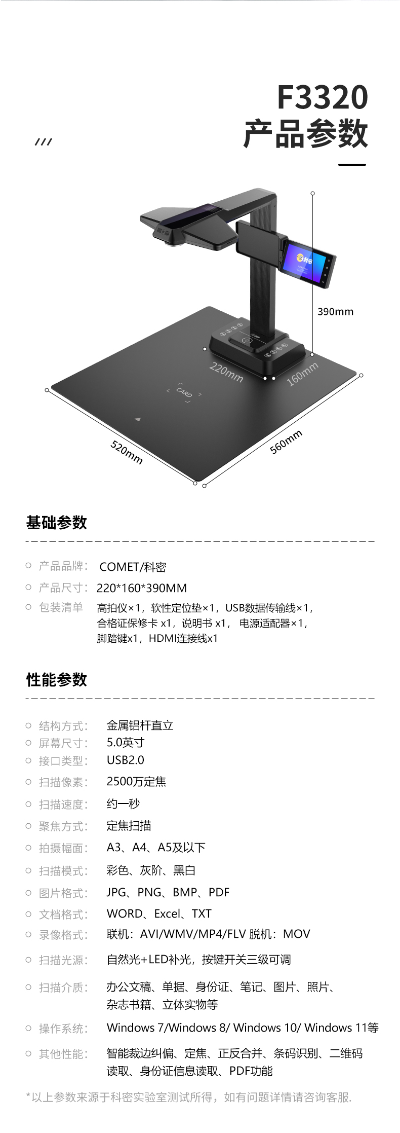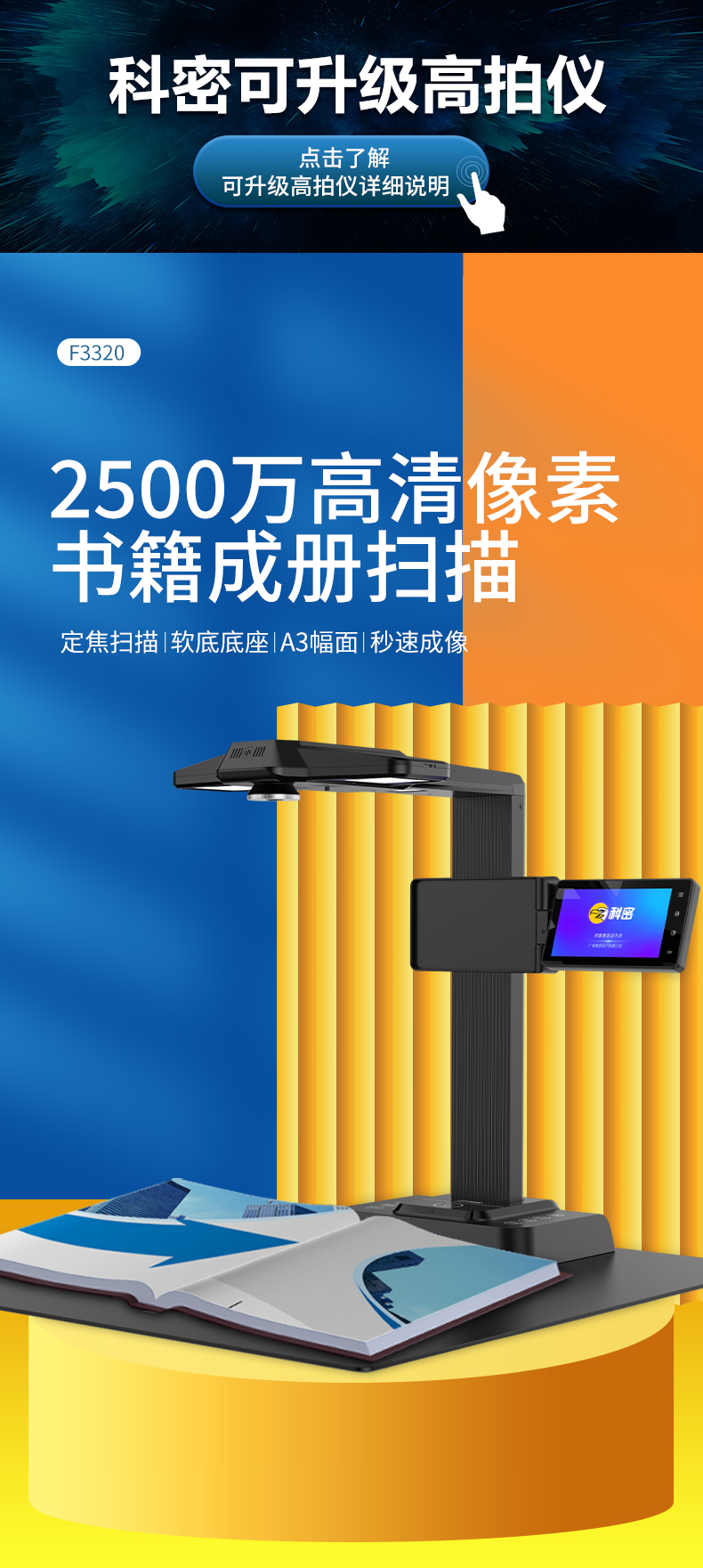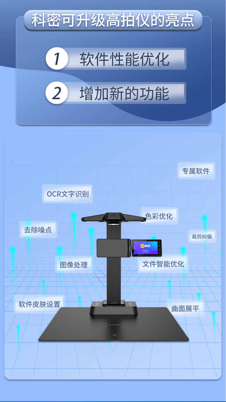 科密 F3320 高拍儀 2500萬高清像素 A3A4書籍曲面展平 OCR掃描儀 預(yù)覽屏 HDMI 可二次開發(fā) 軍隊軍采指定機型