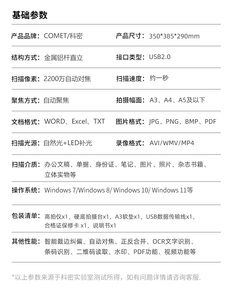 科密(comet) A5318高拍儀 2200萬高清像素 A3A4掃描儀 遠(yuǎn)程網(wǎng)課圖書館檔案室