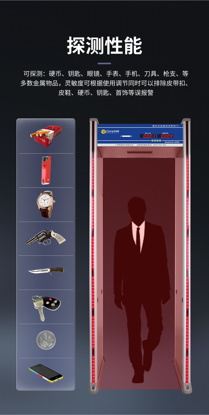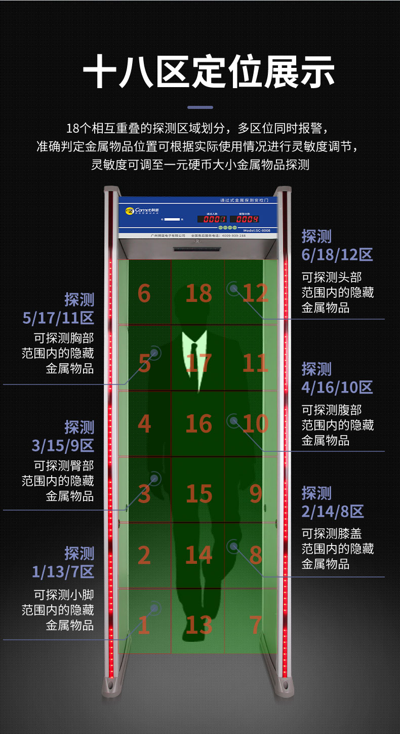 科密安檢門金屬探測門六區(qū)檢測工廠防盜手機(jī)車站學(xué)校公檢法SC-8008