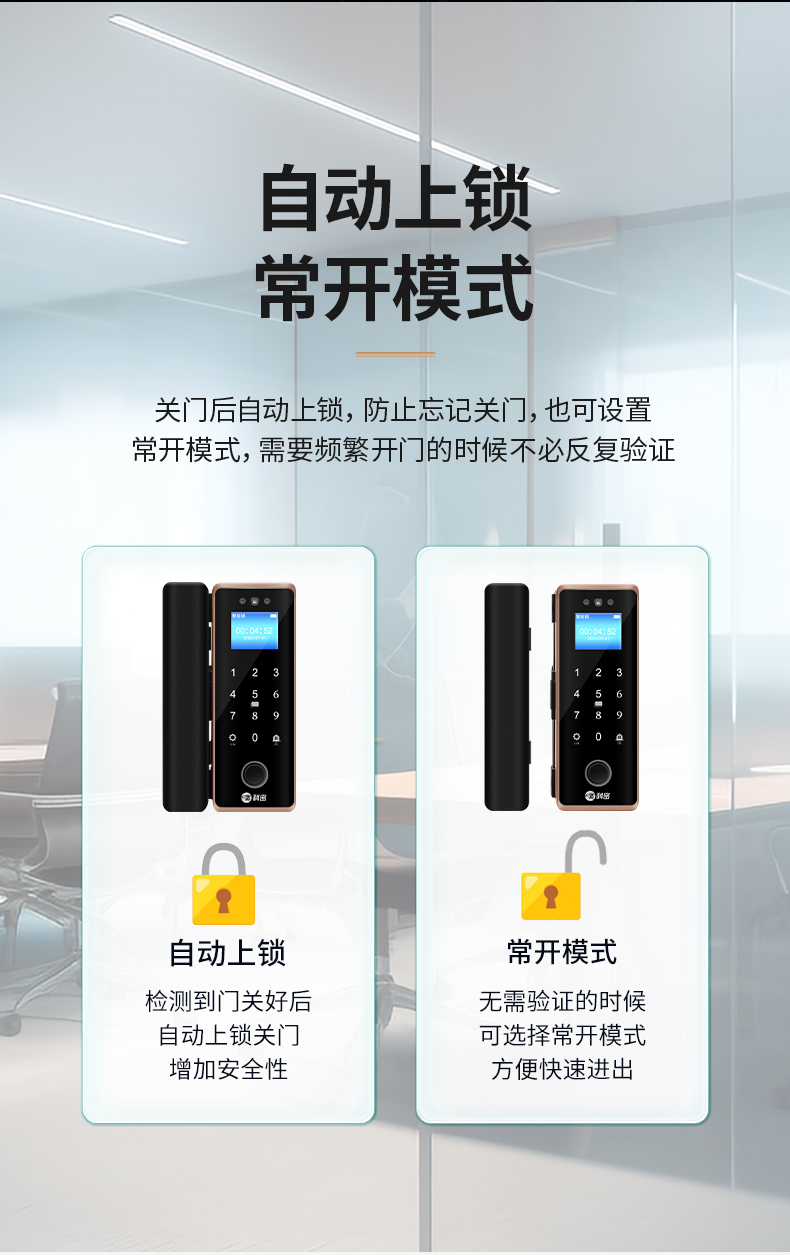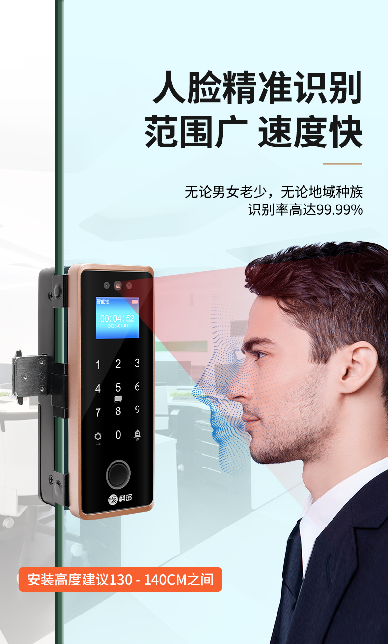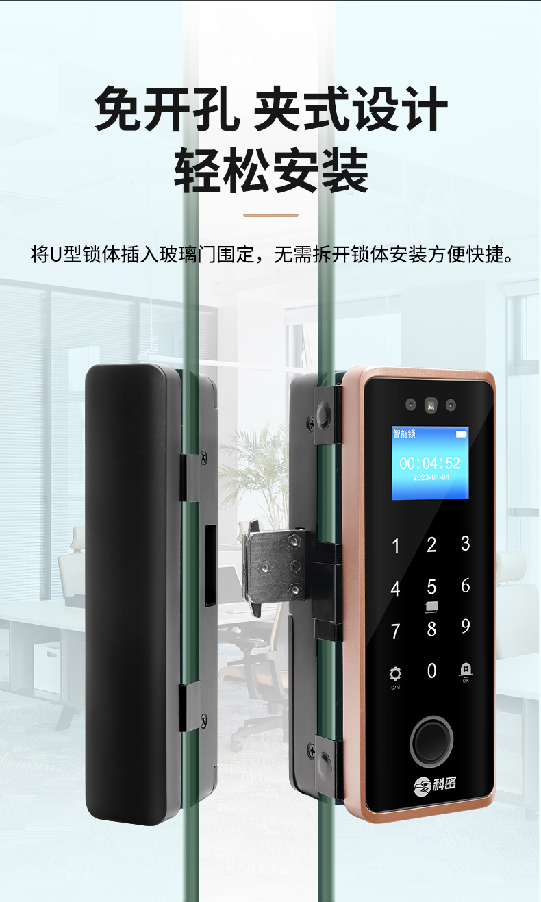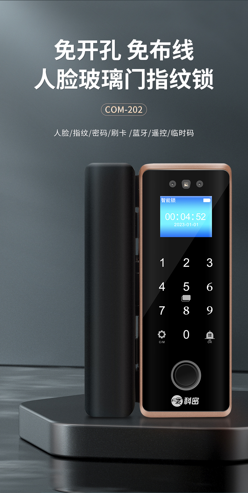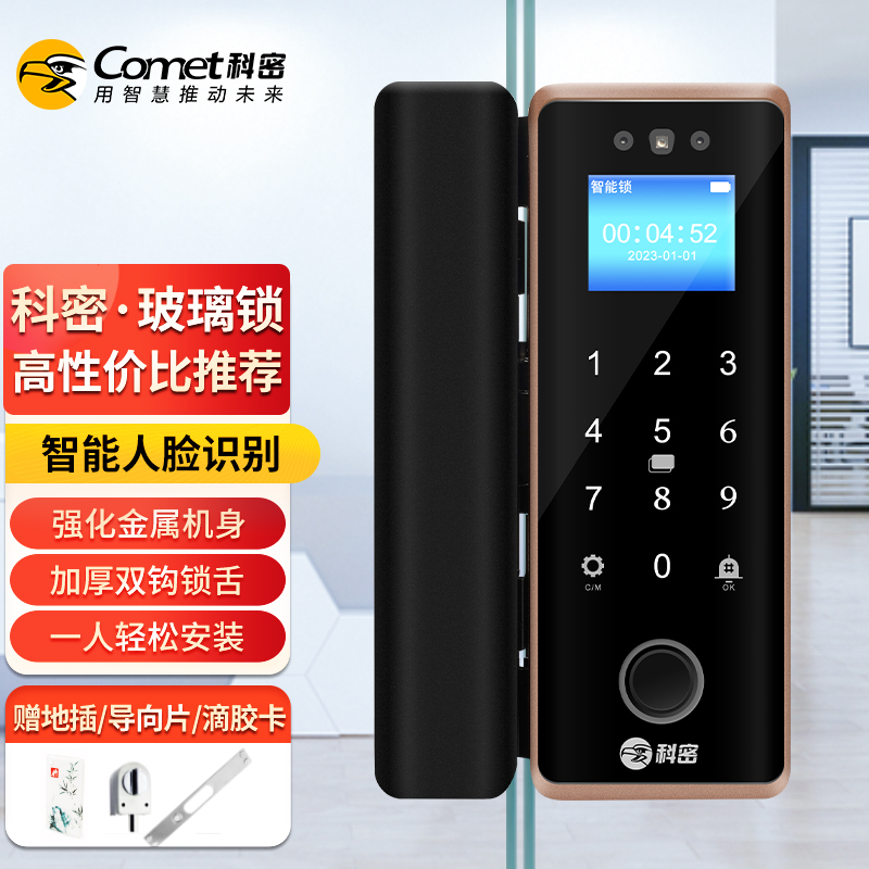 科密(comet)人臉識別玻璃門指紋鎖門禁智能電子密碼鎖辦公室玻璃門鎖小程序開鎖 金屬材質(zhì)COM-202