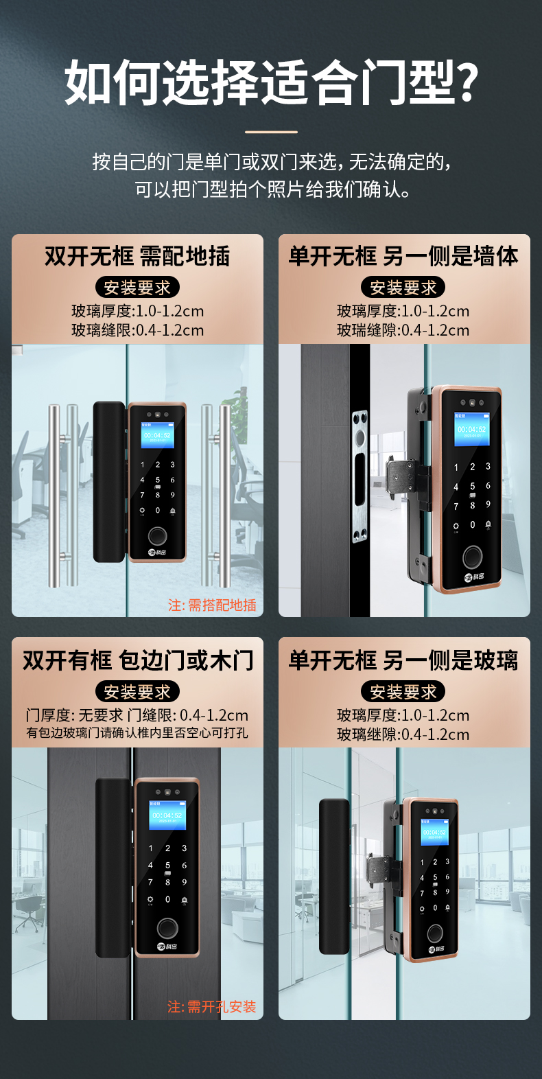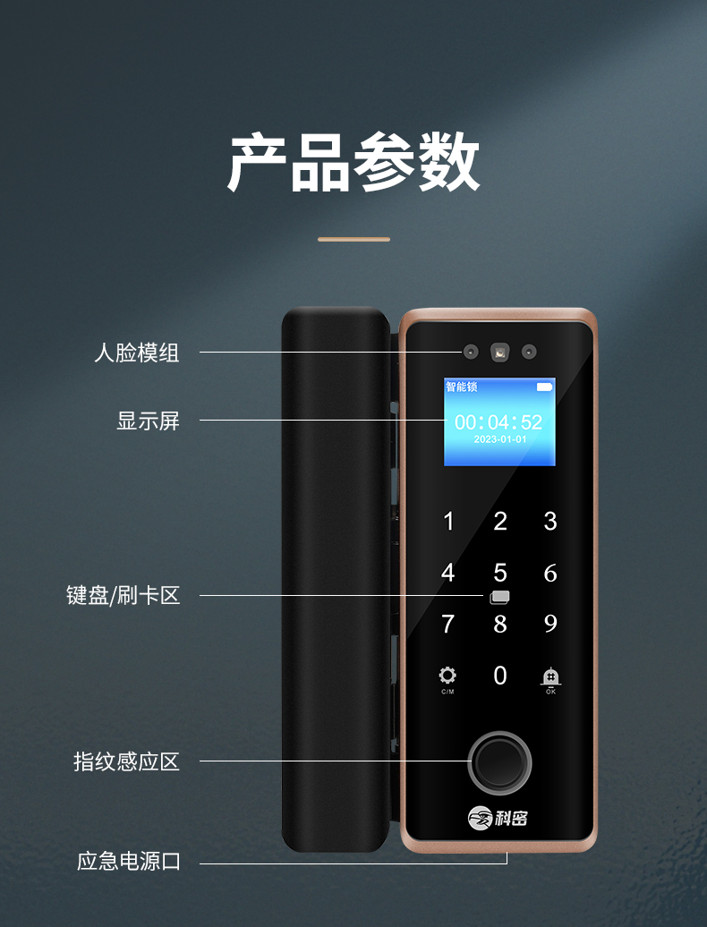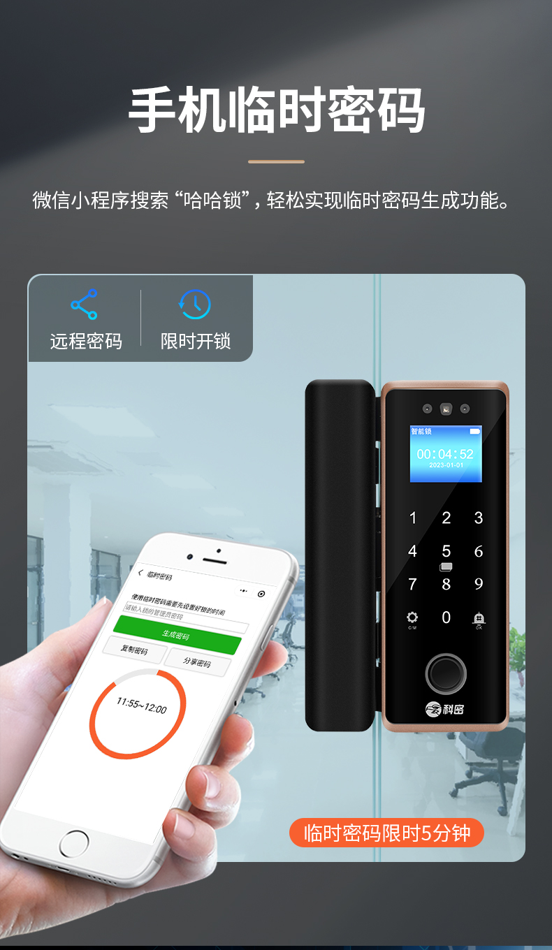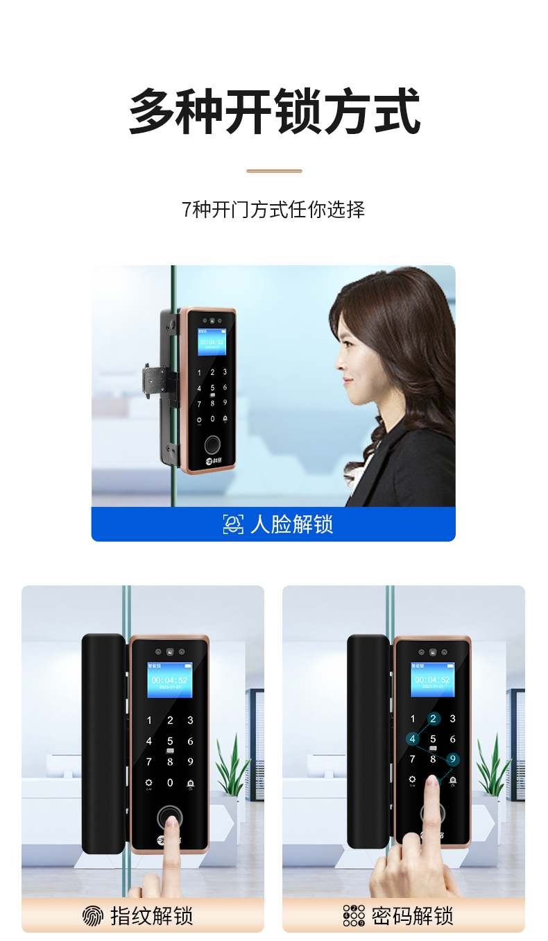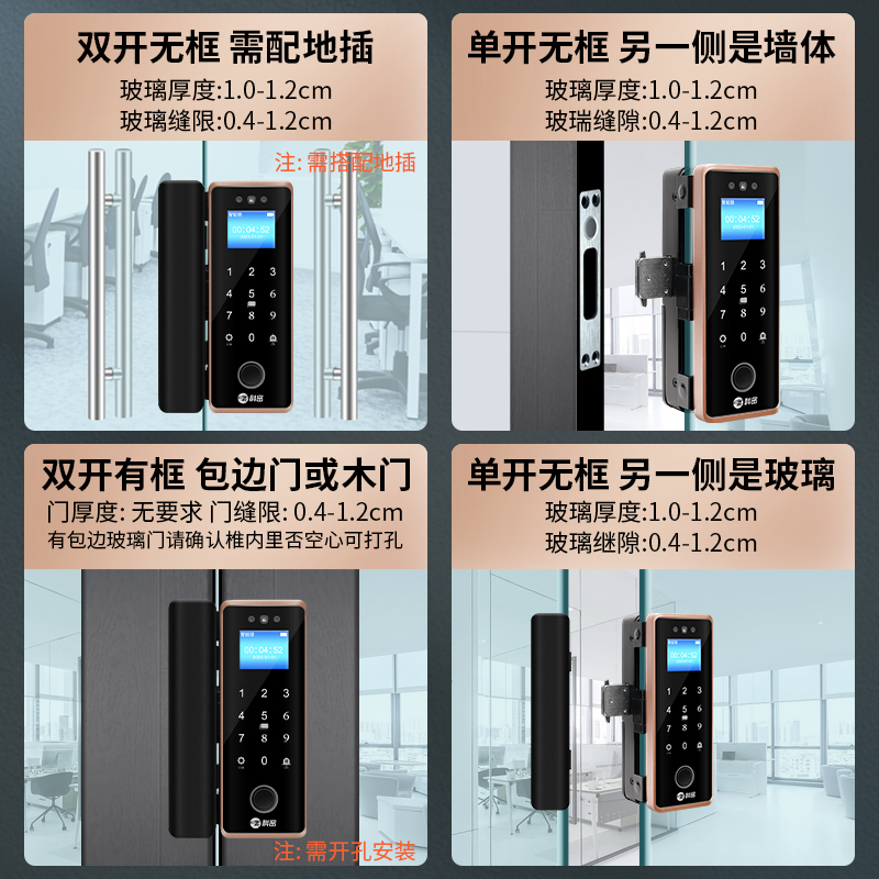 科密(comet)人臉識別玻璃門指紋鎖門禁智能電子密碼鎖辦公室玻璃門鎖小程序開鎖 金屬材質(zhì)COM-202