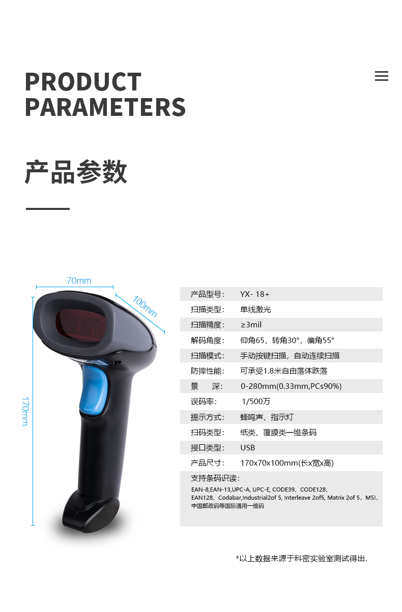 科密(comet)YX-18+ 有線一維碼激光掃碼槍掃描槍條碼槍 快遞倉(cāng)儲(chǔ)物流商品盤點(diǎn)出入庫(kù) 即插即用