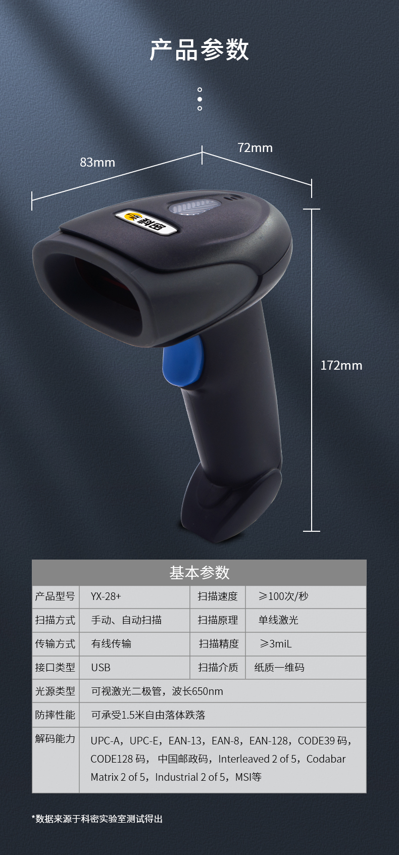 科密(comet)YX-28+ 有線一維碼激光掃描槍掃碼槍條碼槍掃碼器掃描器 快遞零售倉(cāng)庫(kù)物流商品盤(pán)點(diǎn)出入庫(kù)