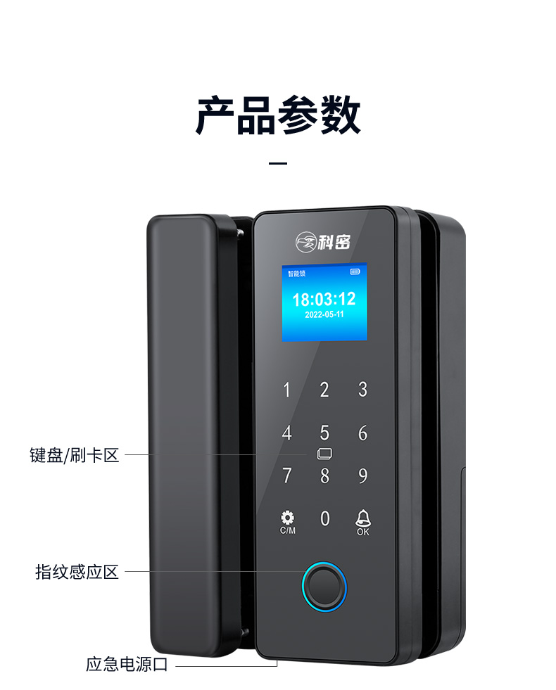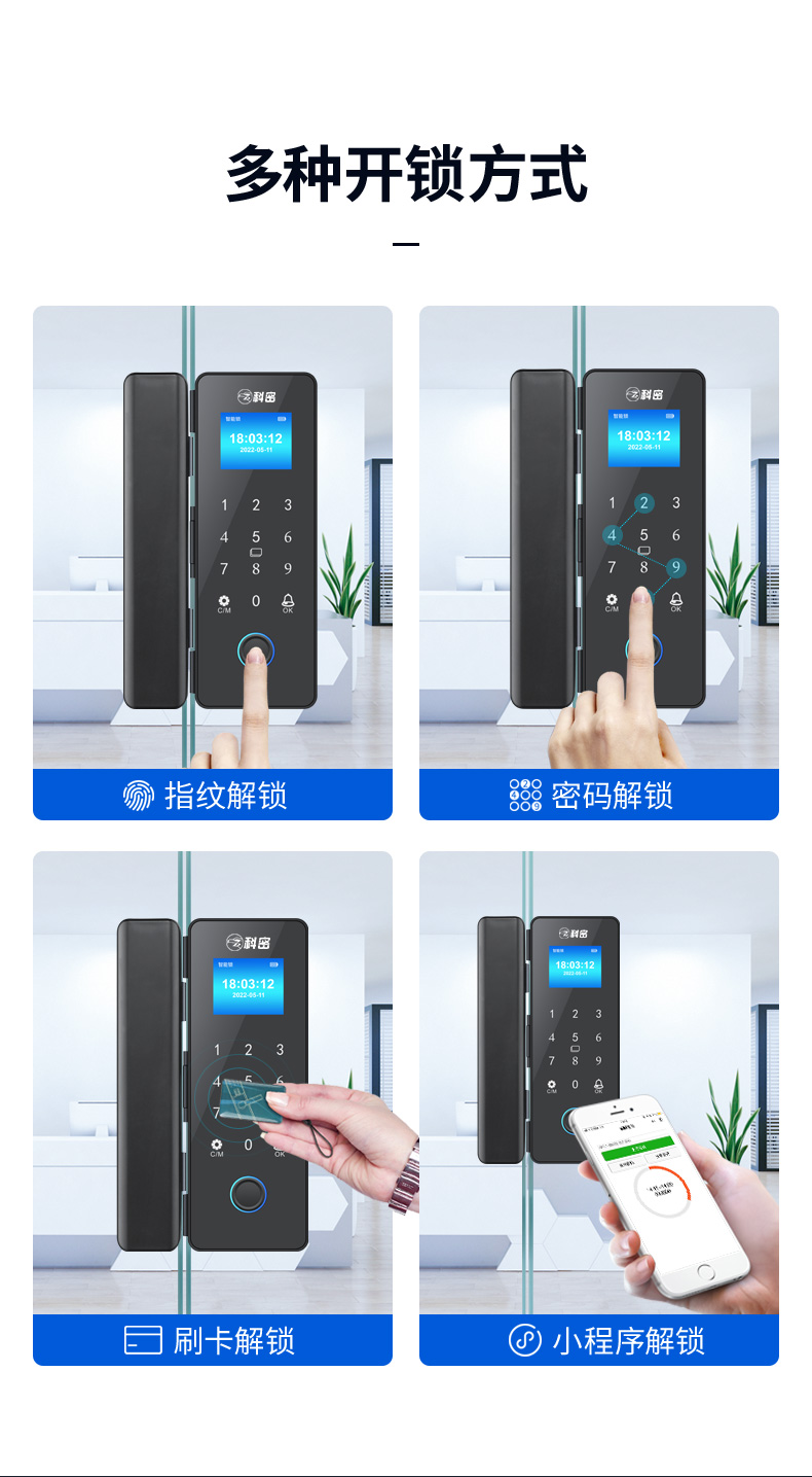 科密玻璃門鎖商鋪雙開門免開孔辦公室鎖有框單開智能單門密碼指紋