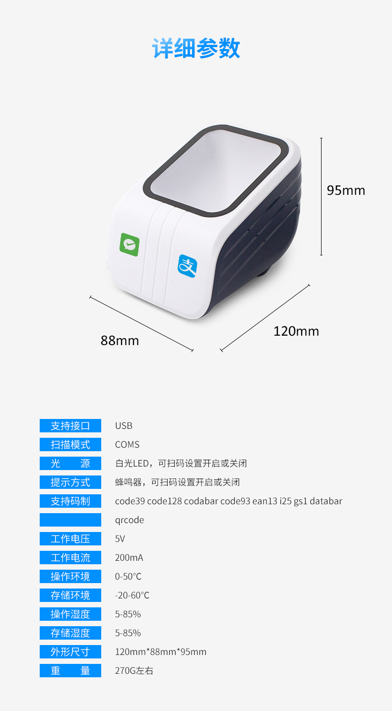 科密P20二維碼掃描器超市收銀掃碼器掃碼支付盒子微信支付寶收錢盒收錢器掃描平臺掃碼墩