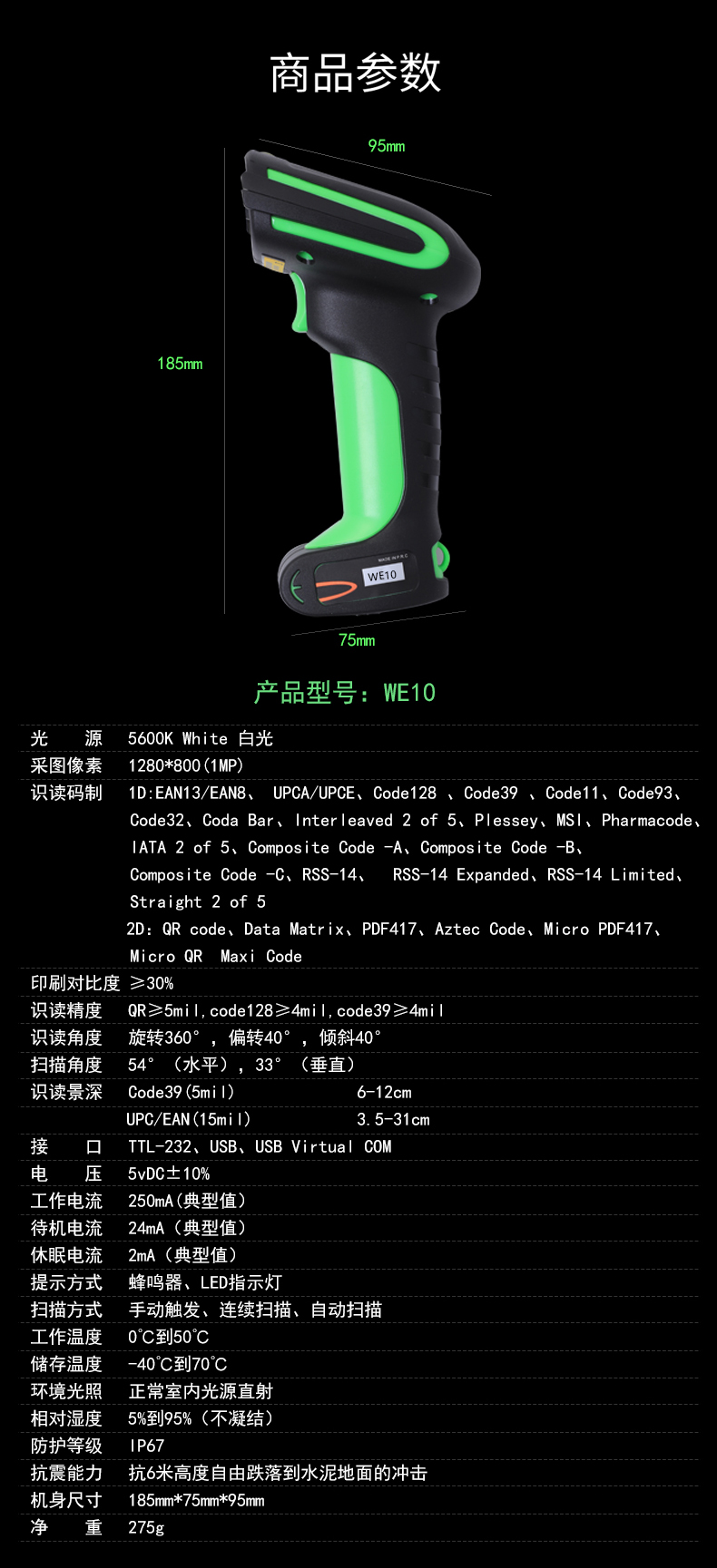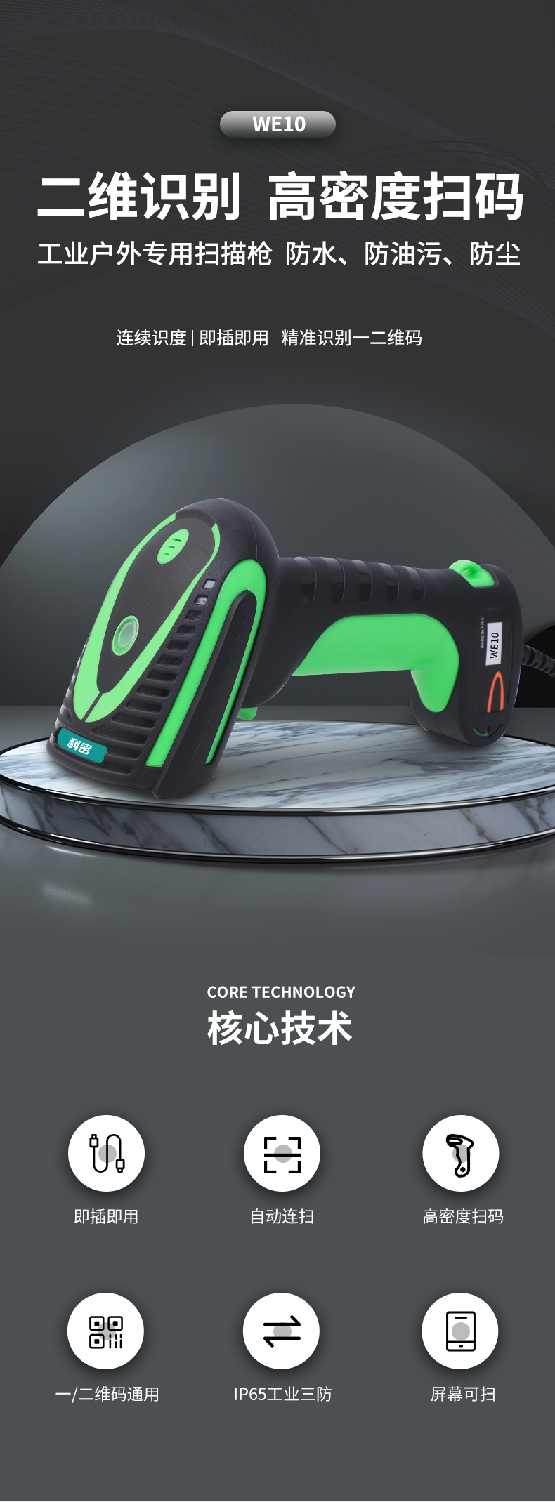 科密(comet)WE10 有線一二維碼掃描槍條碼槍掃碼槍 工業(yè)級防水防塵防油污 金屬DPM碼 支持國產(chǎn)系統(tǒng)