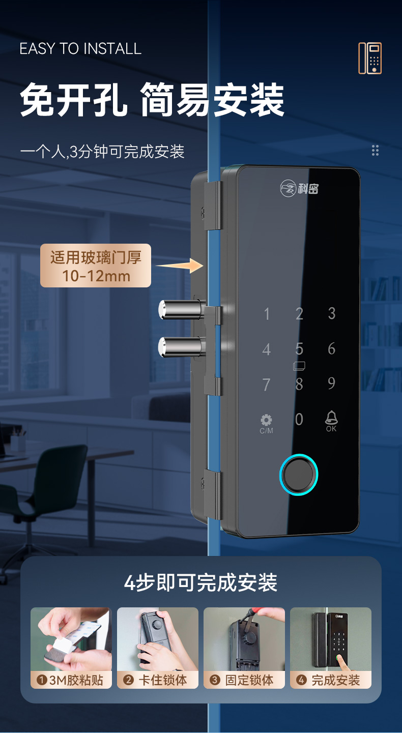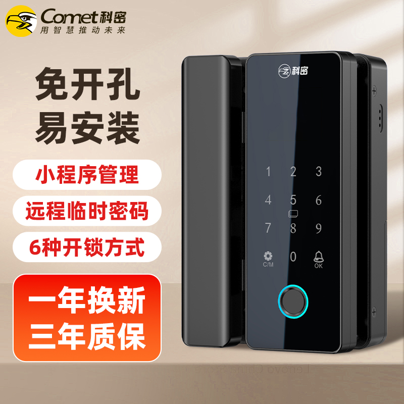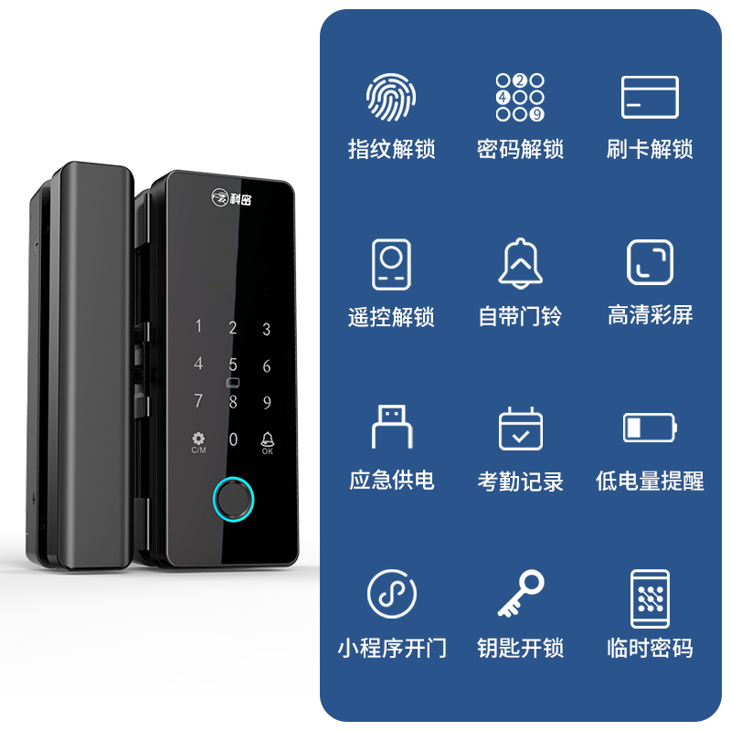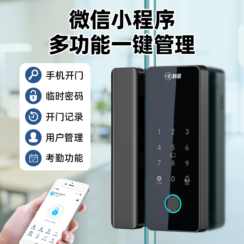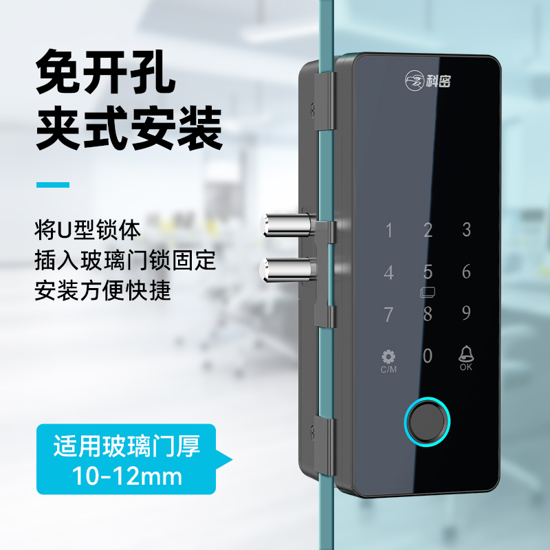 科密TOM-170玻璃門密碼鎖有框無框單雙開門辦公室免開孔智能電子指紋門鎖