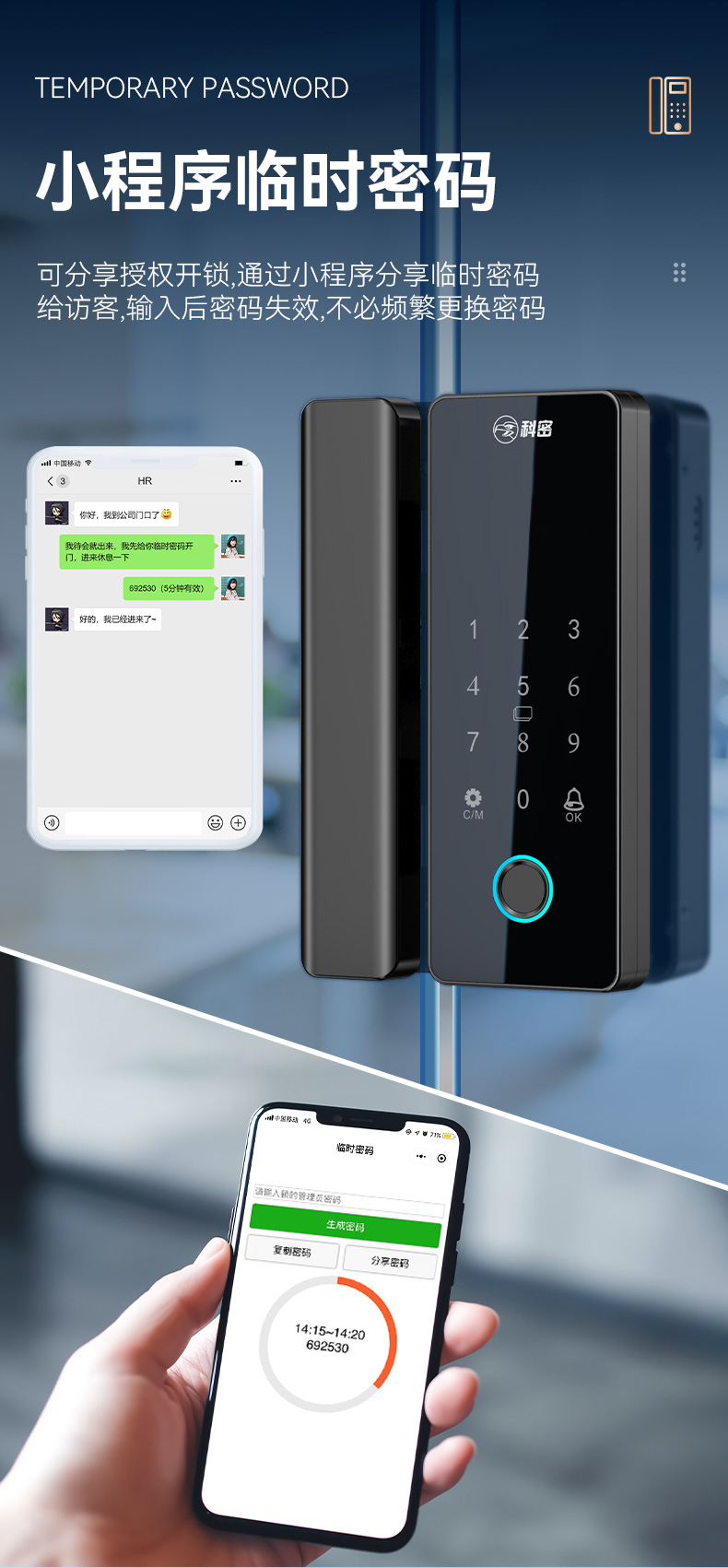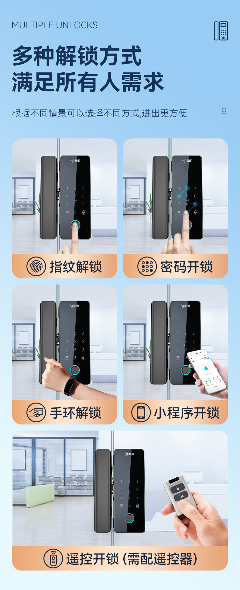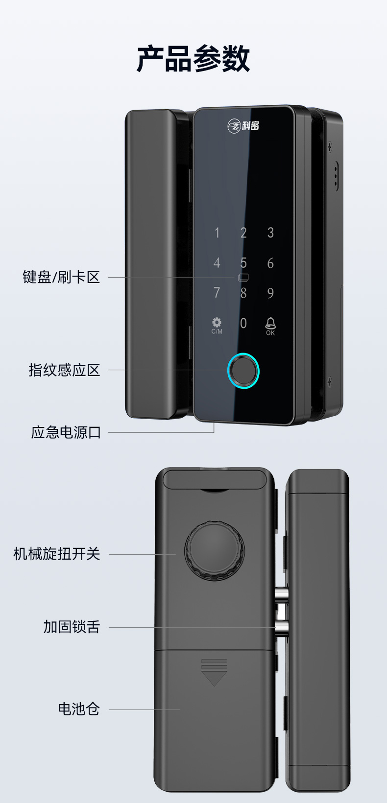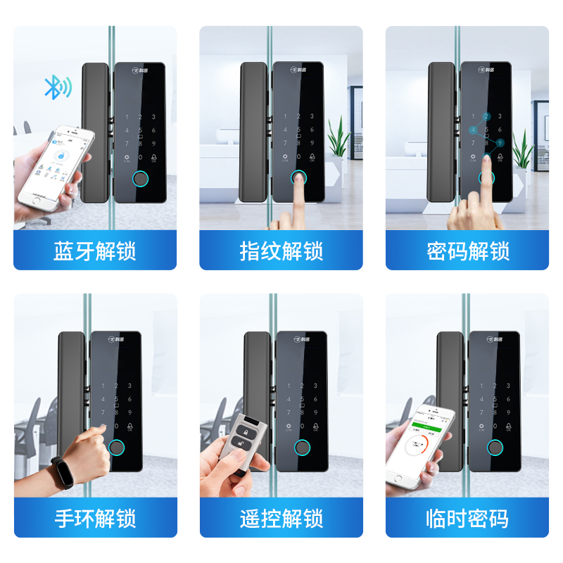 科密TOM-170玻璃門密碼鎖有框無框單雙開門辦公室免開孔智能電子指紋門鎖
