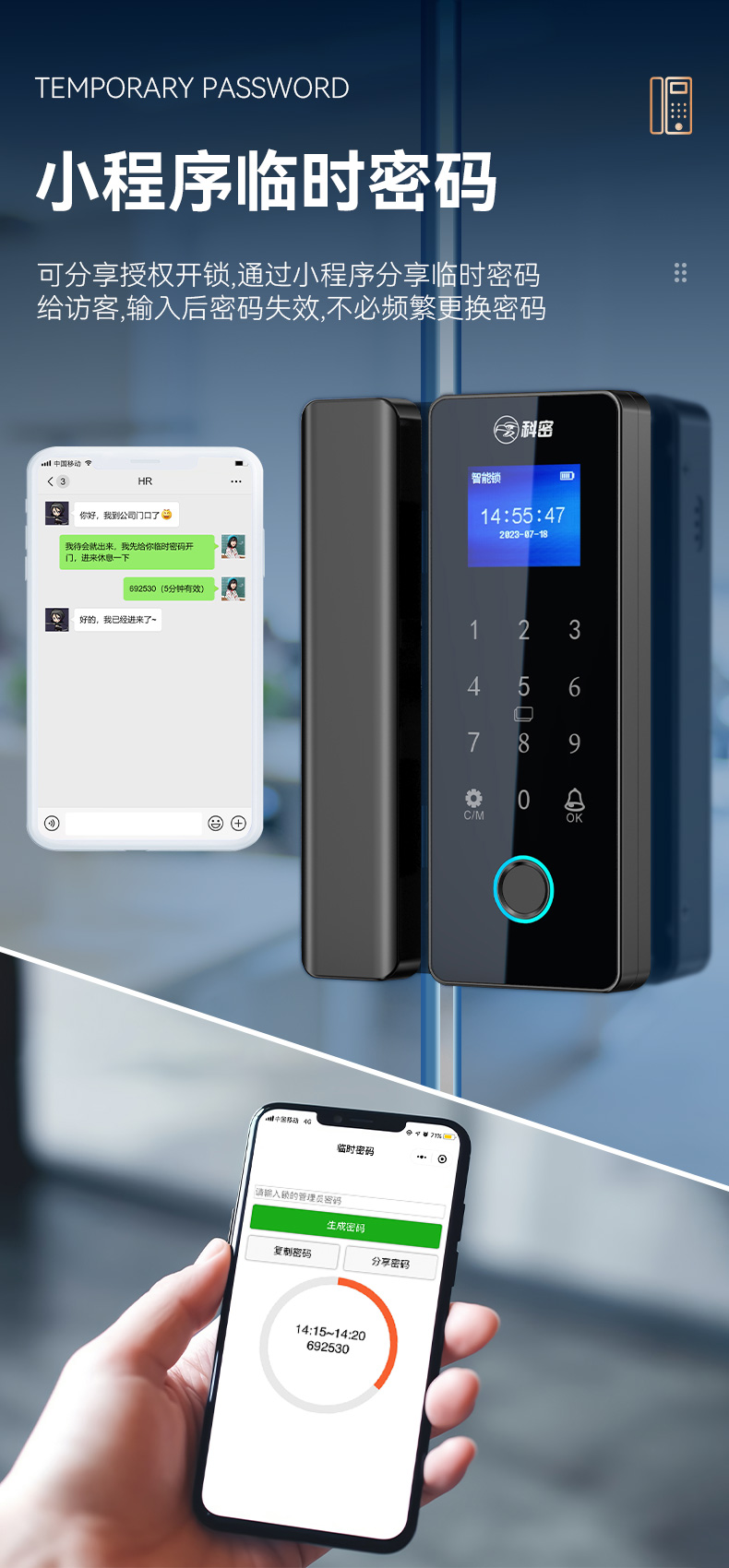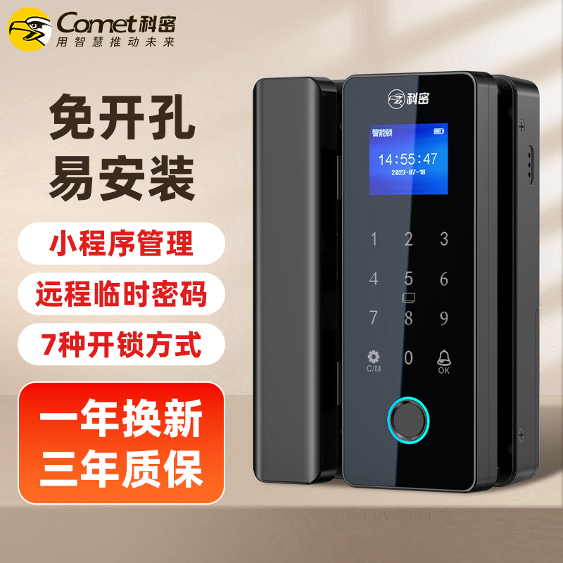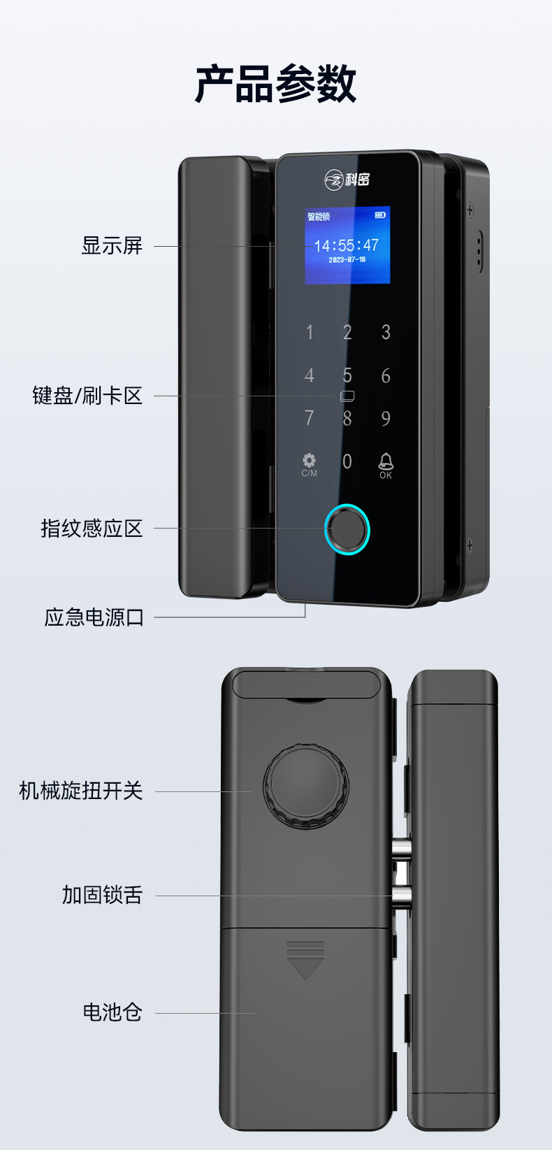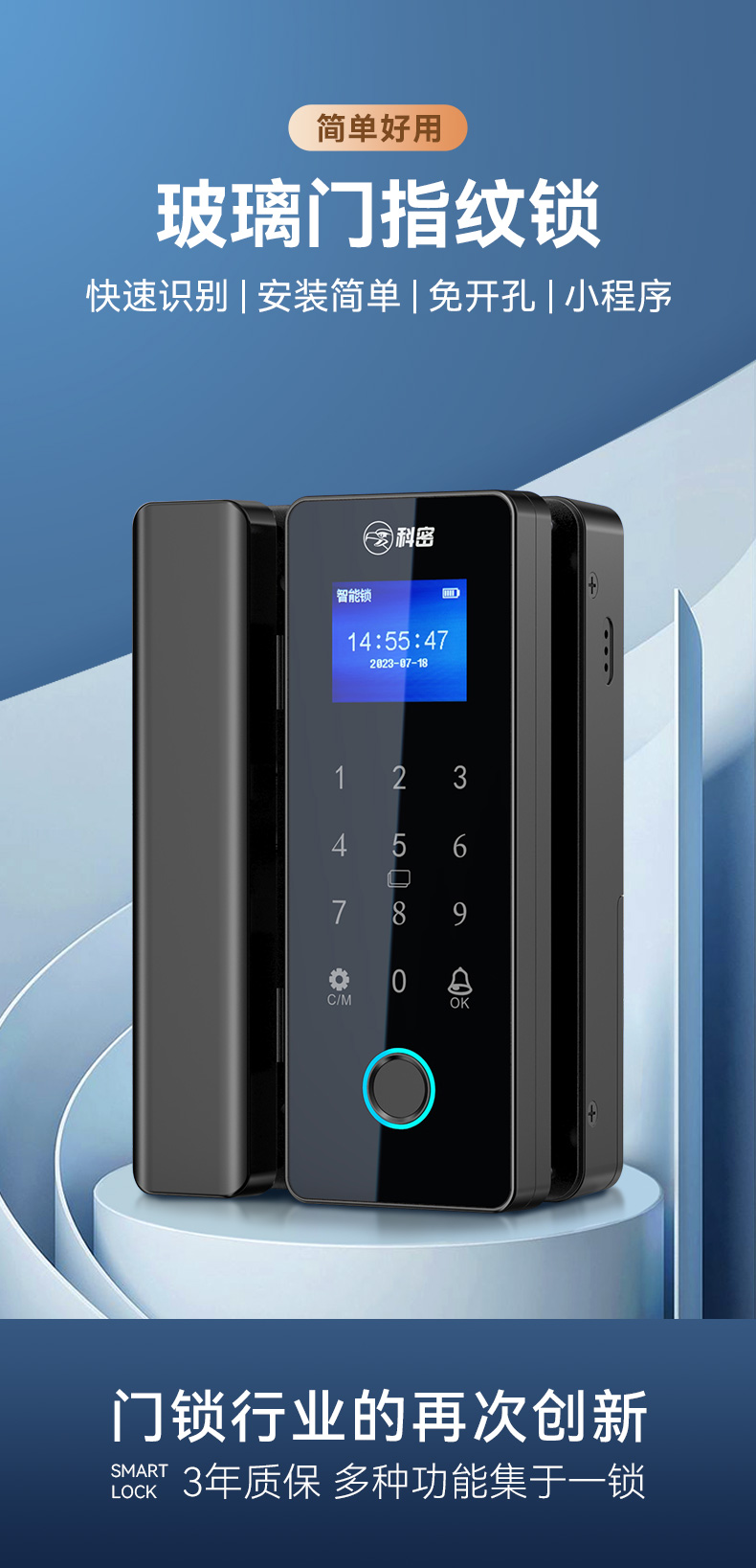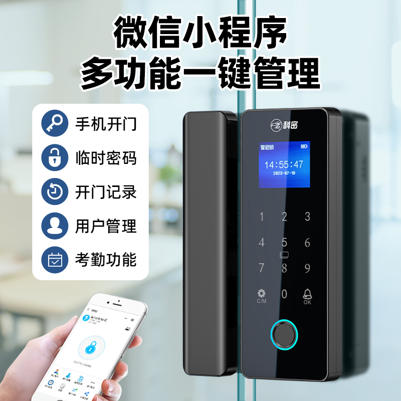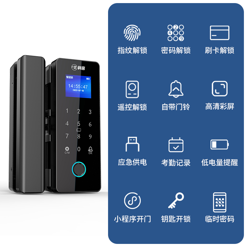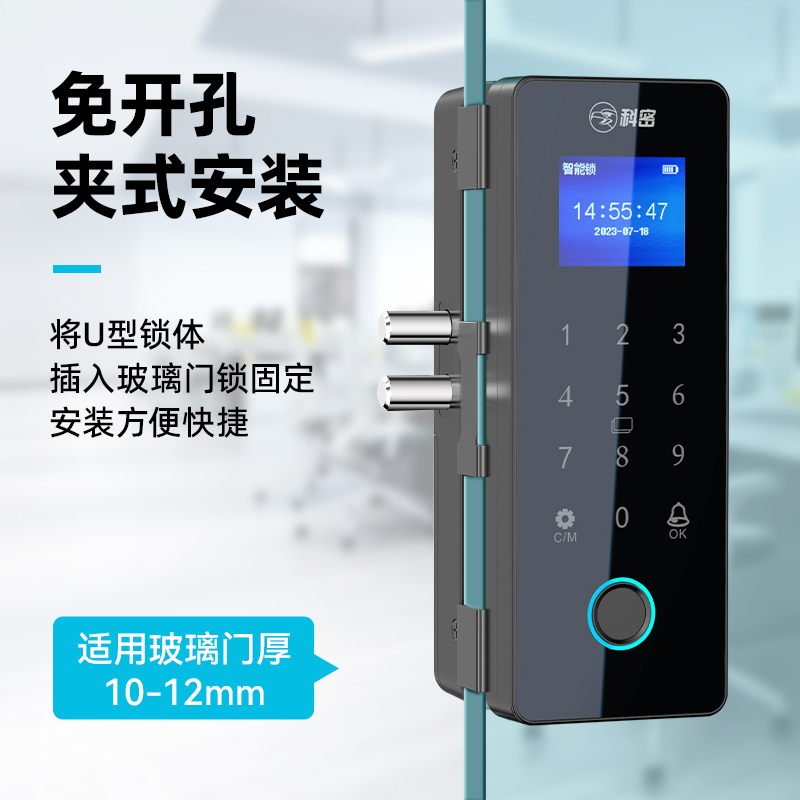 科密TOM-171玻璃門密碼鎖有框無框單雙開門辦公室免開孔智能電子指紋門鎖