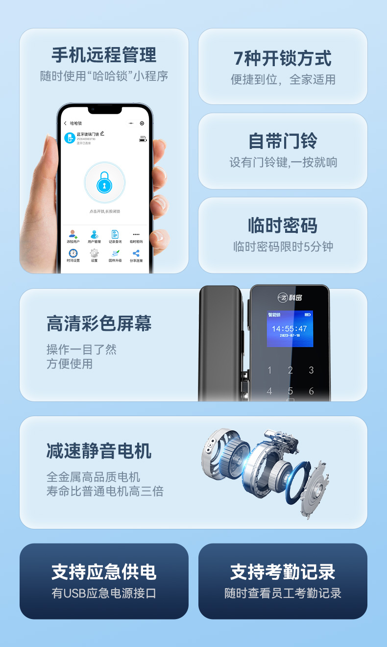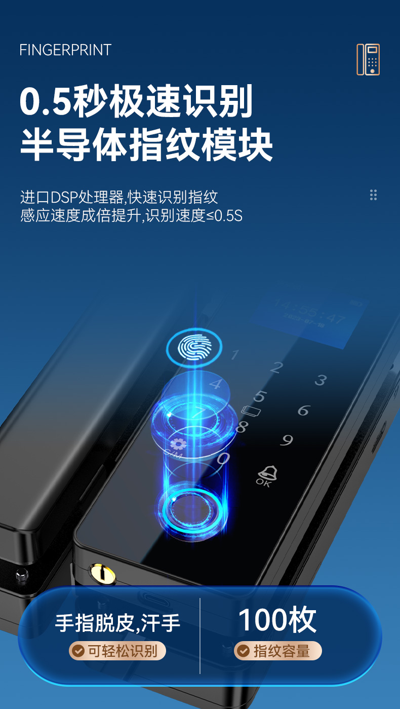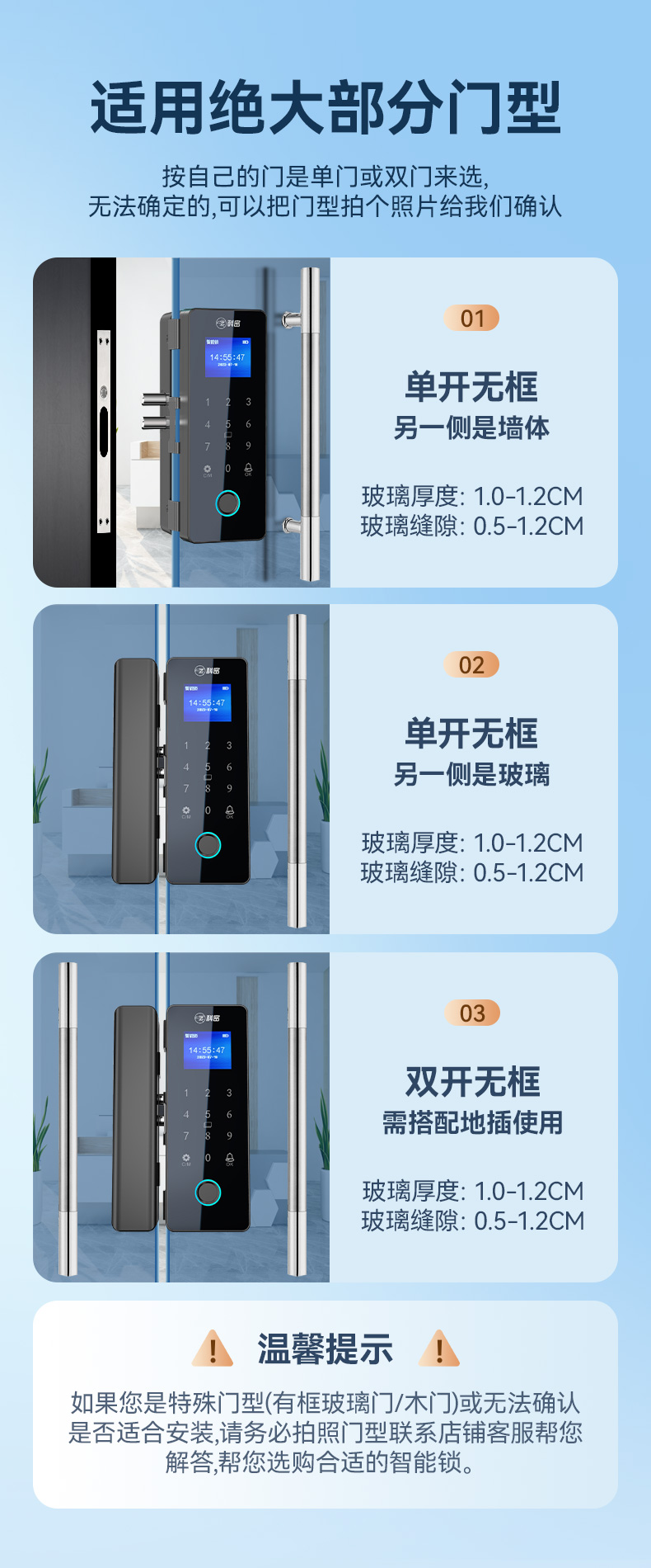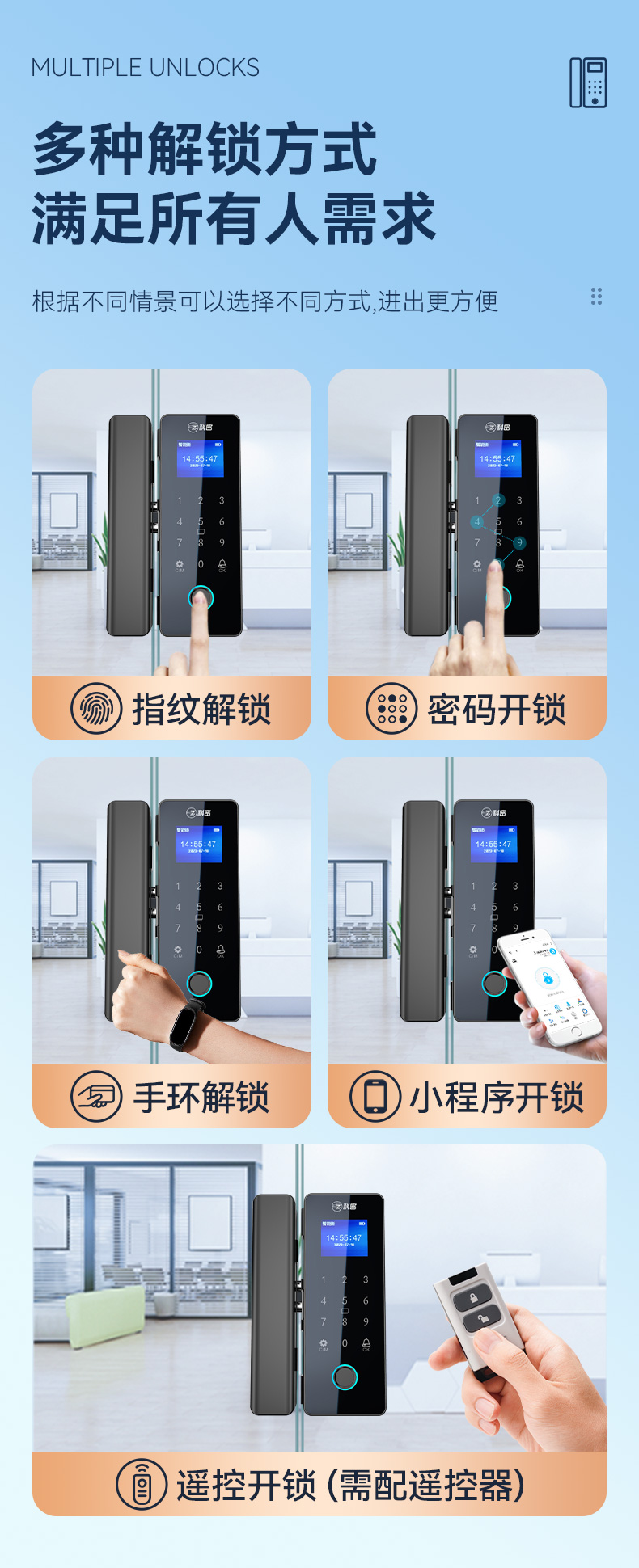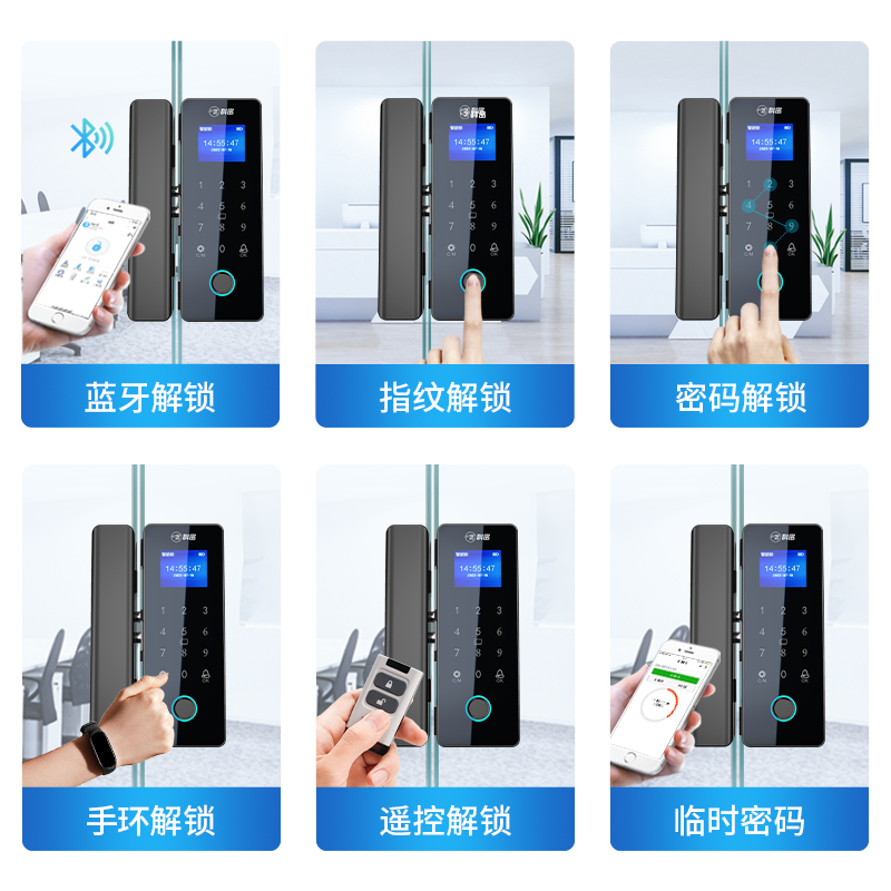 科密TOM-171玻璃門密碼鎖有框無框單雙開門辦公室免開孔智能電子指紋門鎖