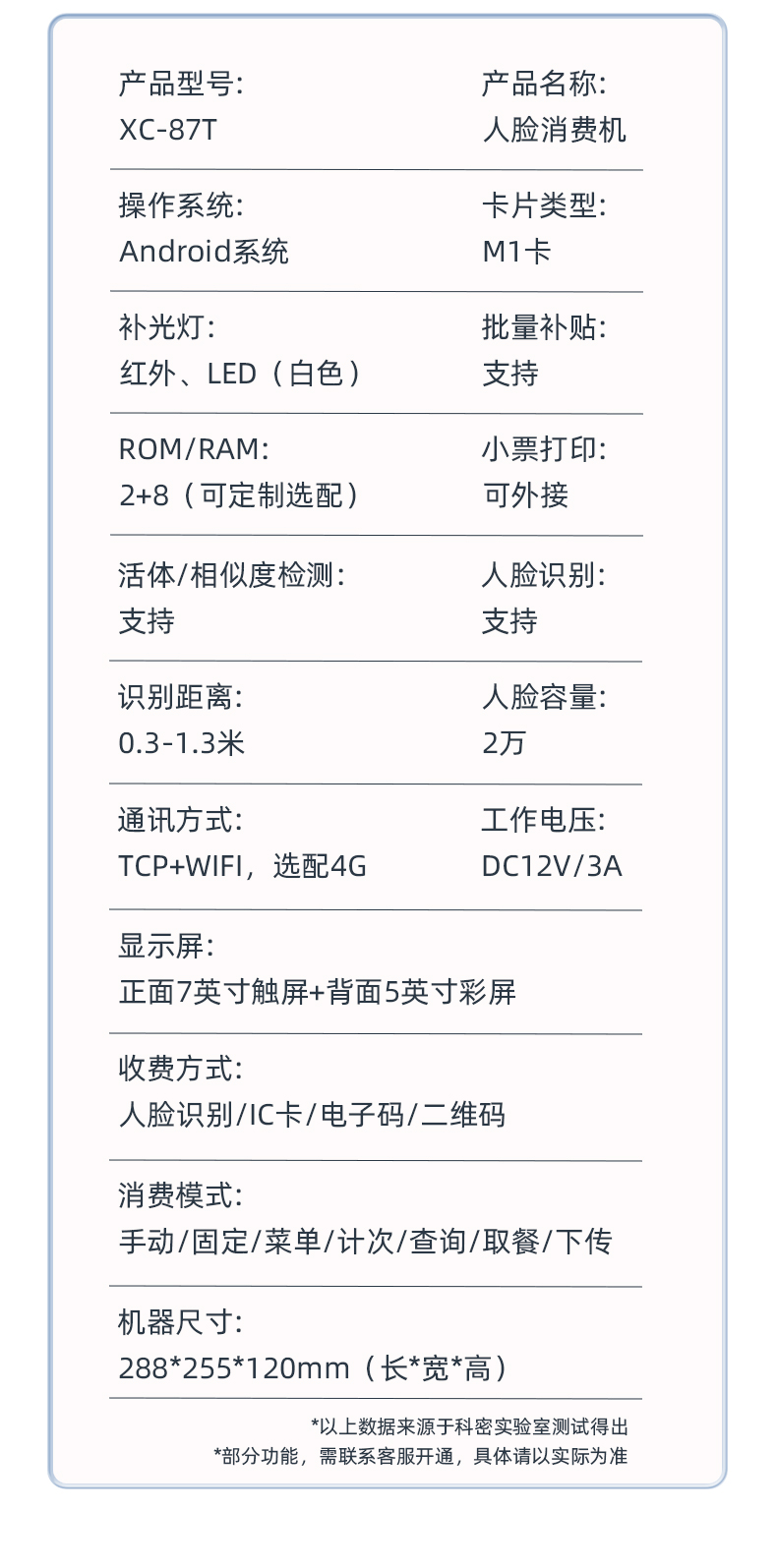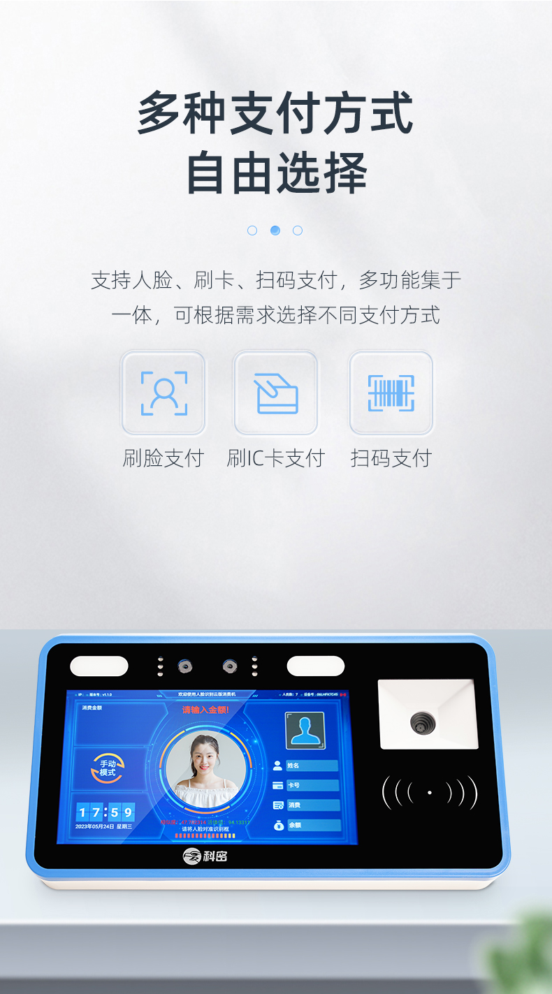 科密(comet) XC-87T人臉消費機收款機 學校單位工廠食堂刷卡消費機 支持人臉電子碼IC卡支