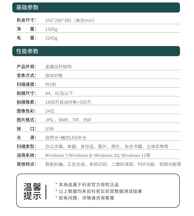 科密(comet) D4412 高拍儀 1600萬+500萬雙攝 掃描儀 A4幅面OCR識(shí)別