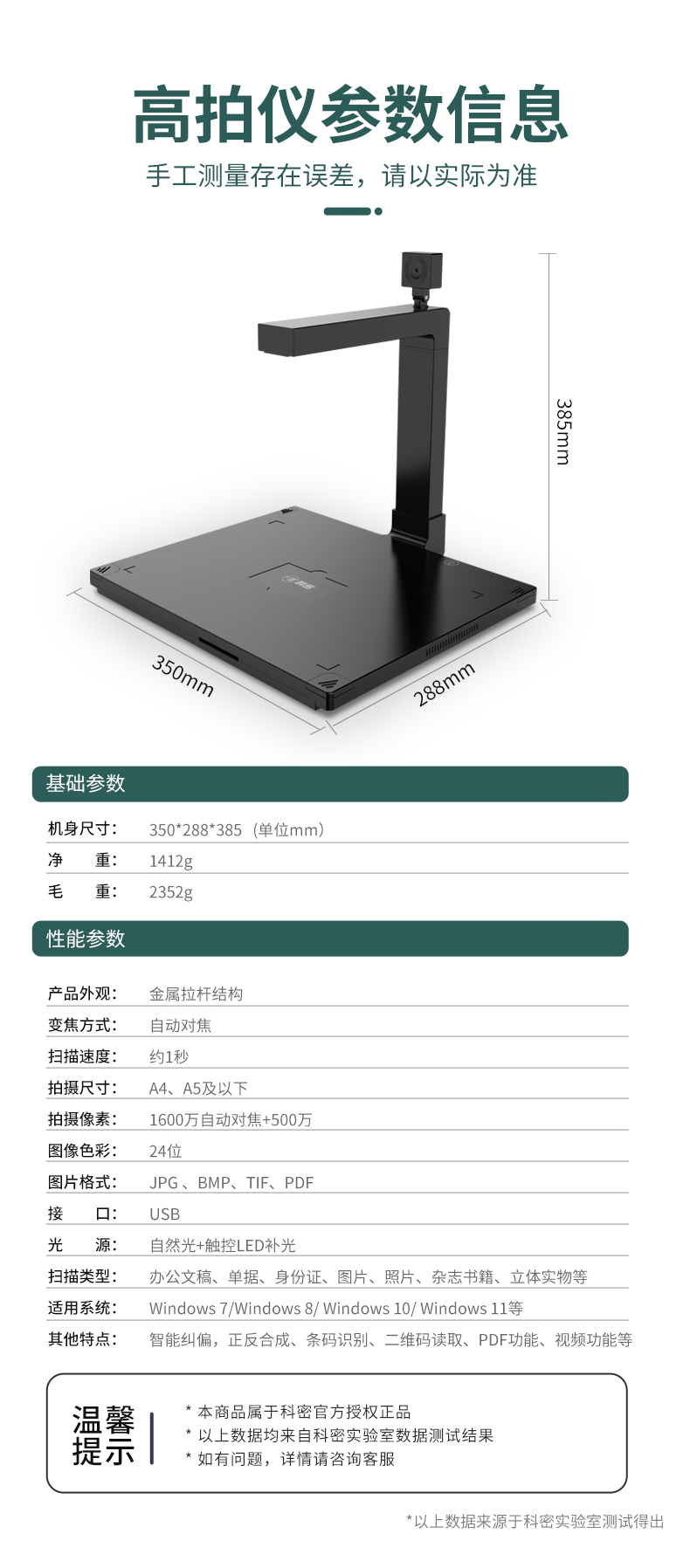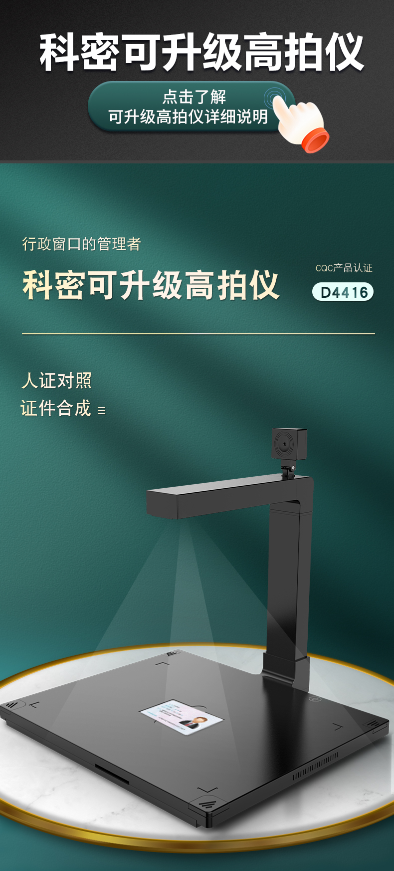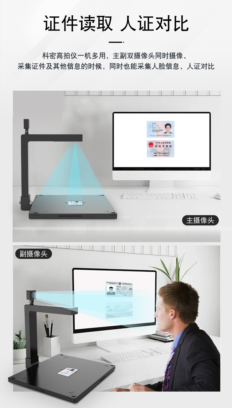 科密 D4416 高拍儀 1600萬+500萬高清像素 A4 身份證閱讀器 文件OCR掃描儀