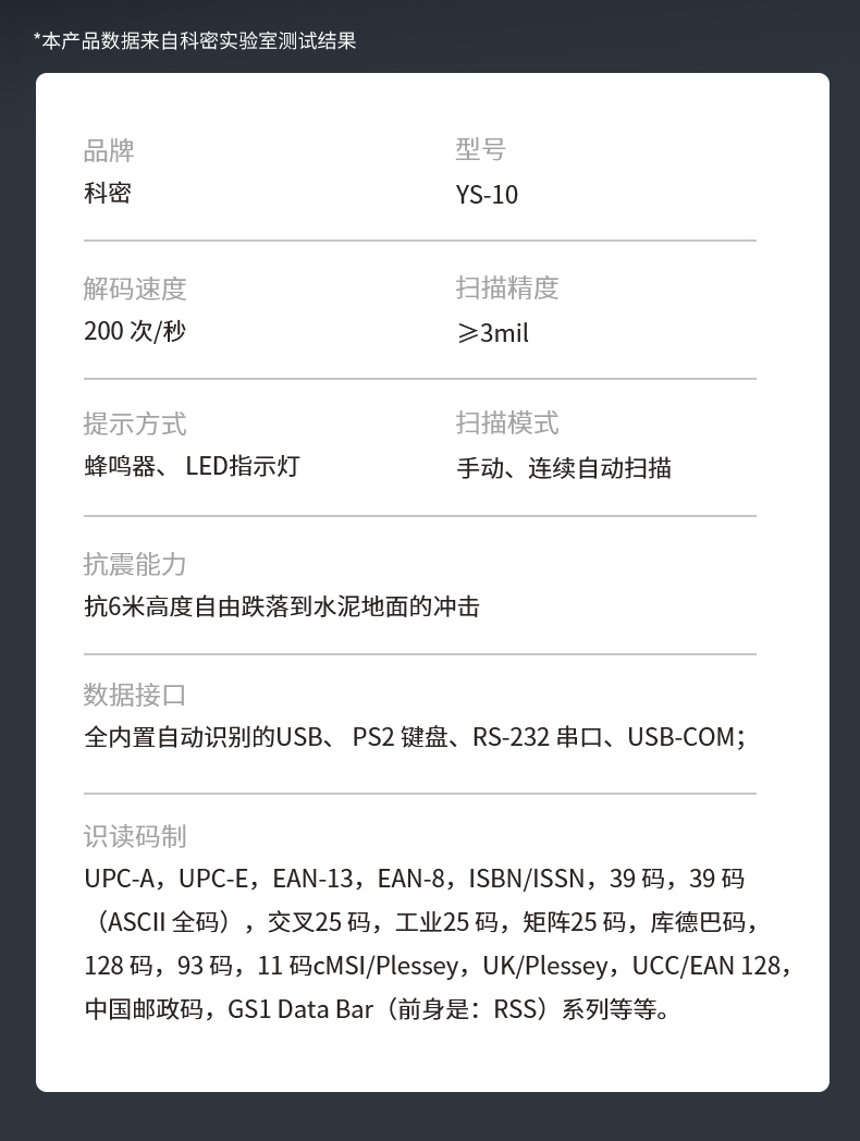 科密(comet)YS10 有線一維碼掃描槍條碼槍掃碼槍 工業(yè)級(jí)防水防塵防油污 生產(chǎn)制造車間微小碼【可定制】