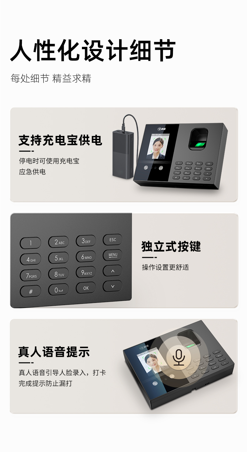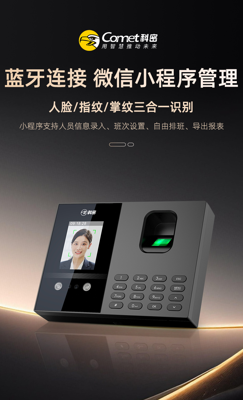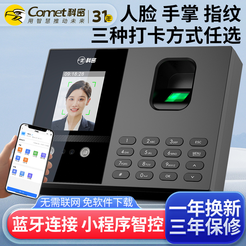 科密(comet)考勤機(jī) 打卡機(jī)人臉+指紋+掌紋識別考勤機(jī) 藍(lán)牙連接 小程序管理 自動生成報表FC02W