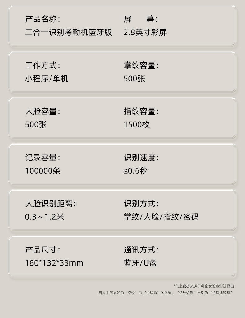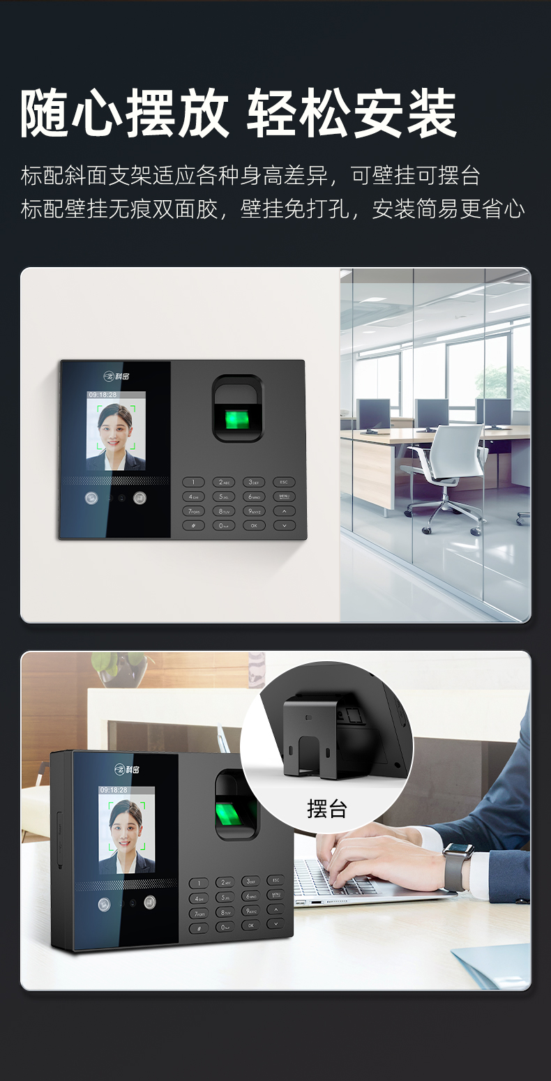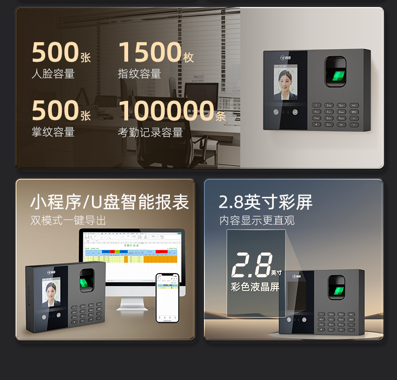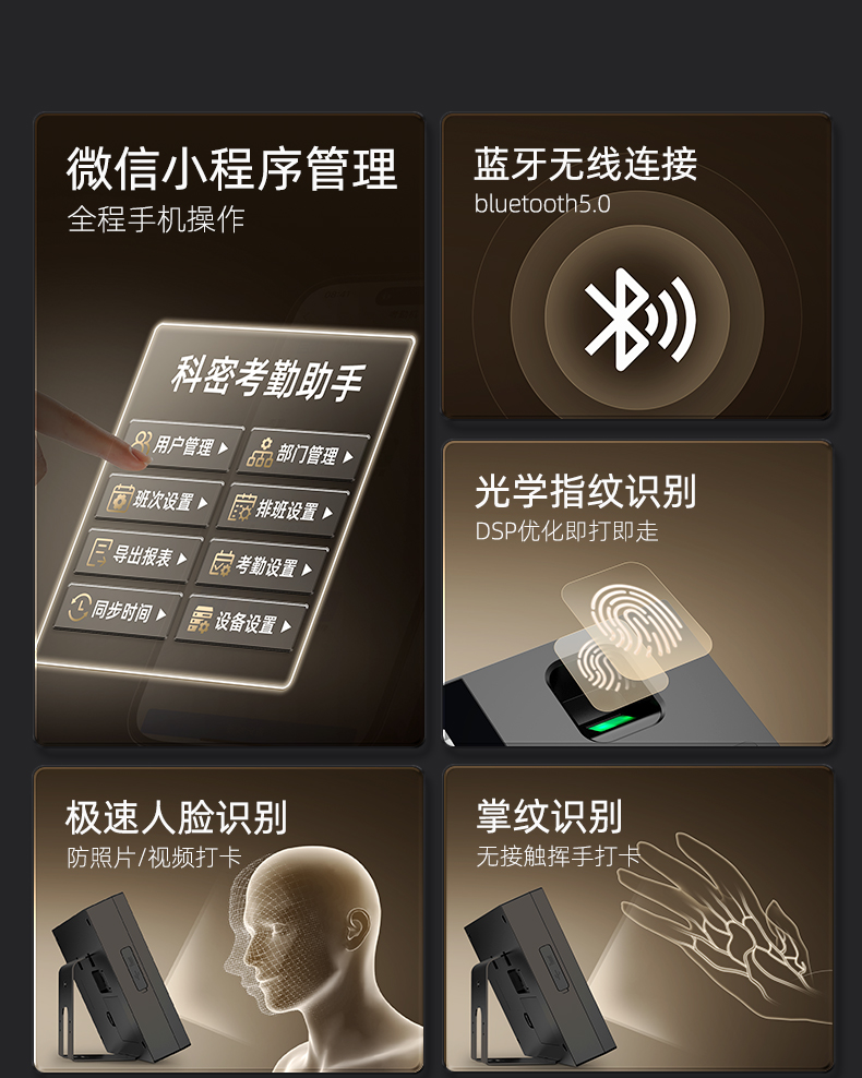 科密(comet)考勤機(jī) 打卡機(jī)人臉+指紋+掌紋識別考勤機(jī) 藍(lán)牙連接 小程序管理 自動生成報表FC02W