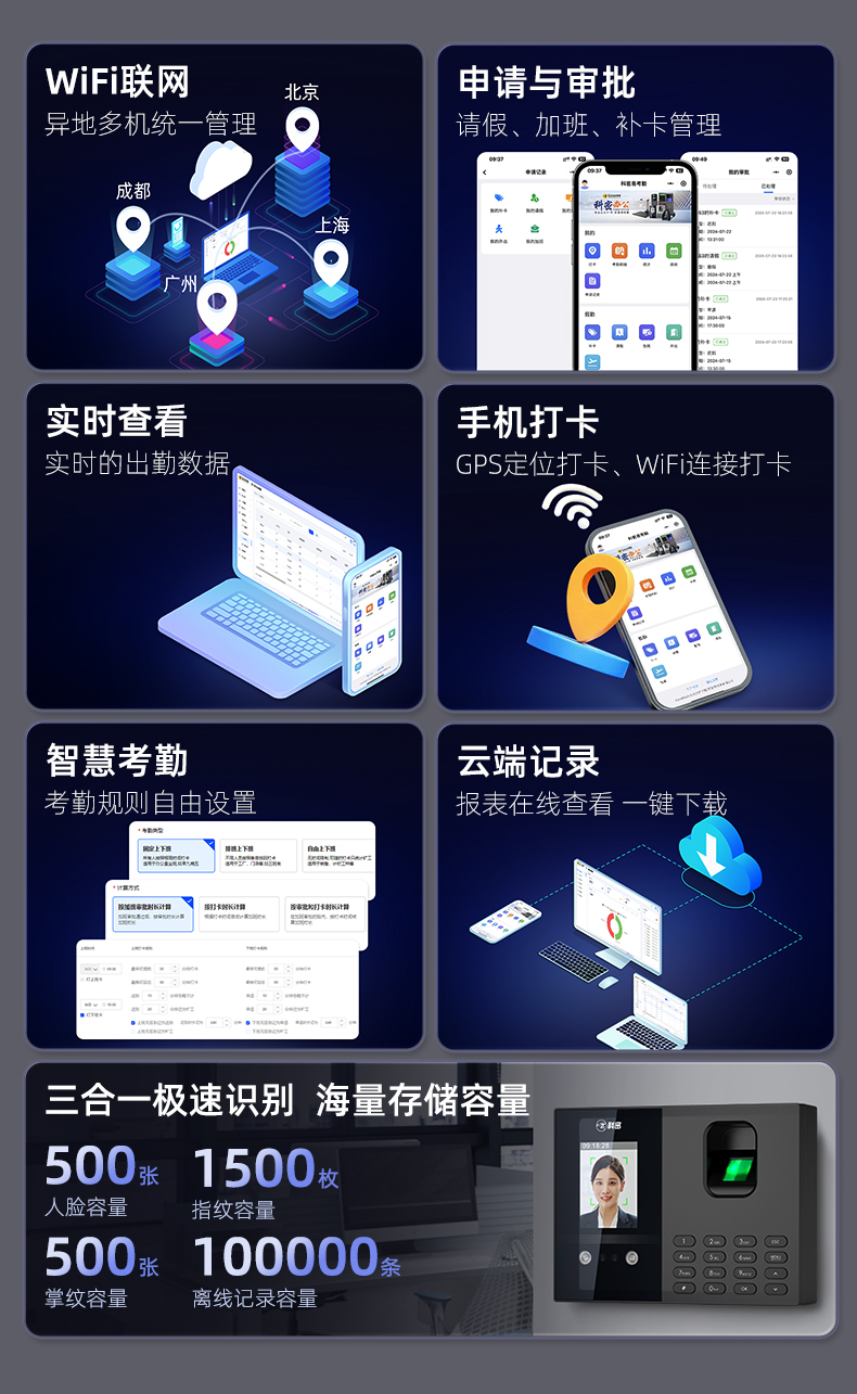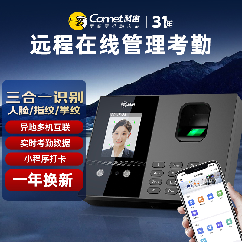 科密(comet)智能云考勤機 打卡機人臉+指紋+掌紋識別考勤機 APP在線管理 實時查看考勤 FC02C
