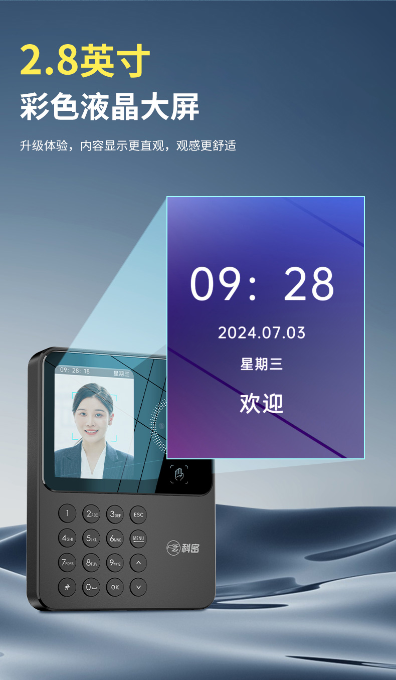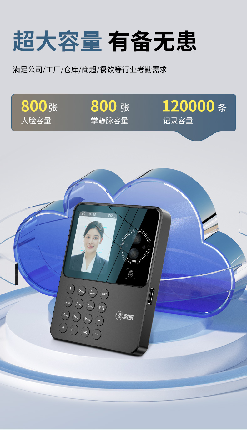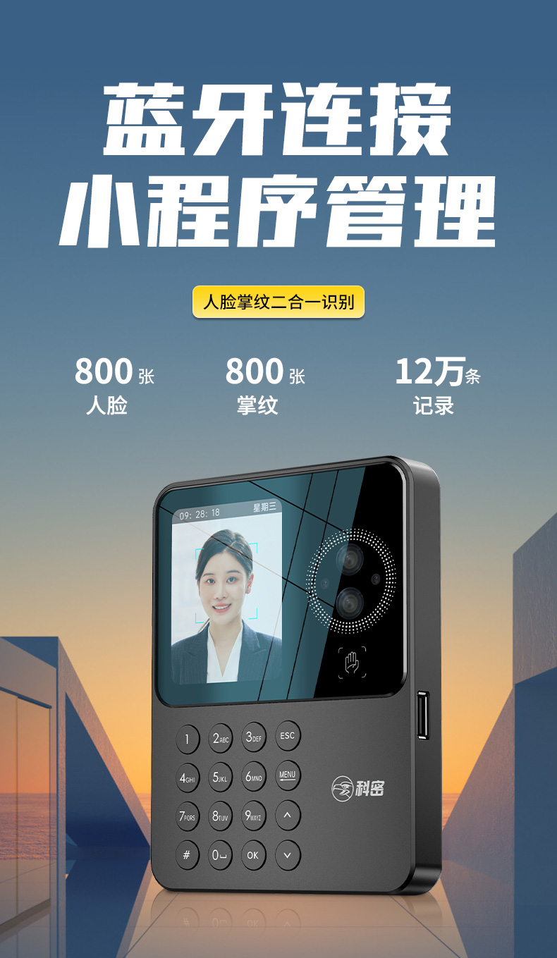 科密(comet)考勤機(jī) 打卡機(jī)人臉+掌紋識別考勤機(jī) 藍(lán)牙連接 小程序管理 自動生成報表PV20W