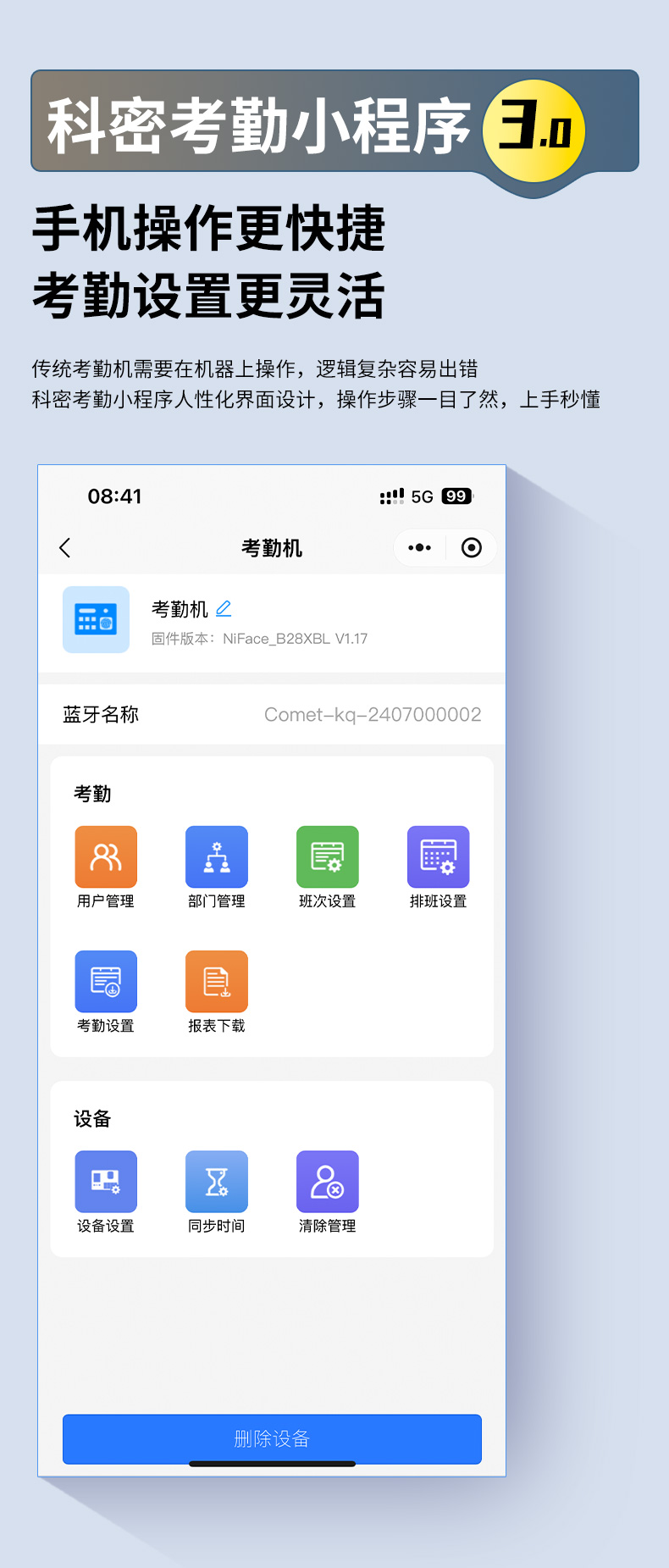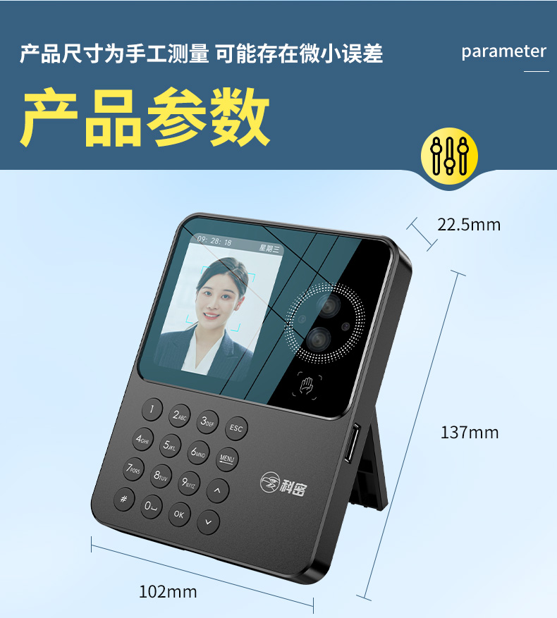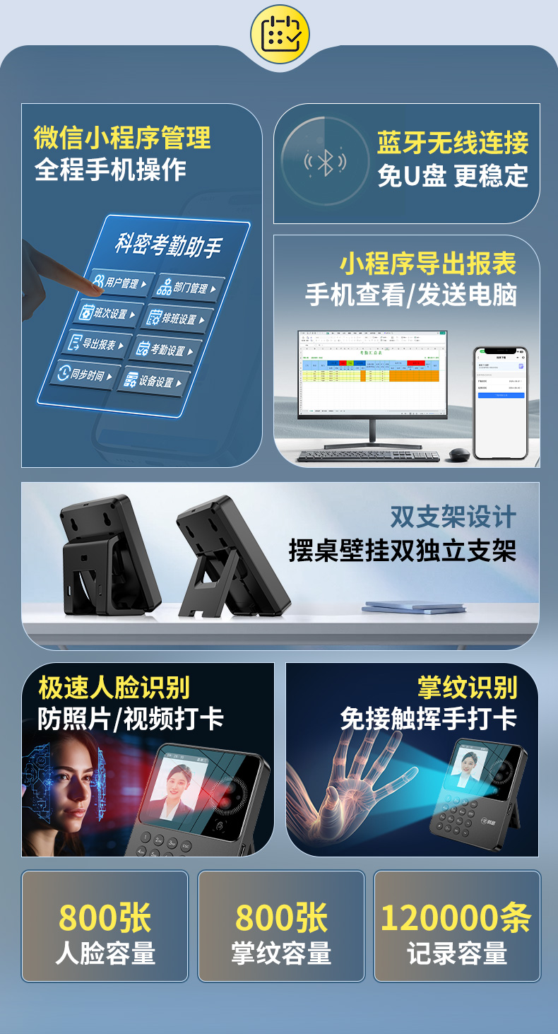 科密(comet)考勤機(jī) 打卡機(jī)人臉+掌紋識別考勤機(jī) 藍(lán)牙連接 小程序管理 自動生成報表PV20W