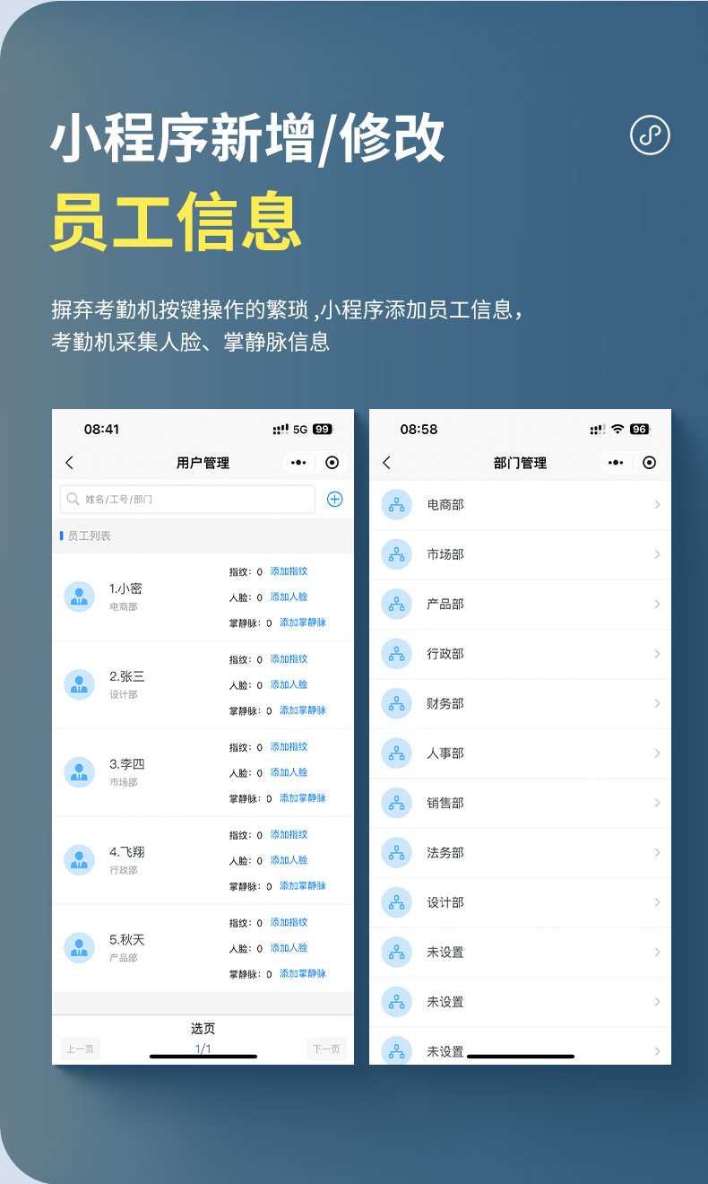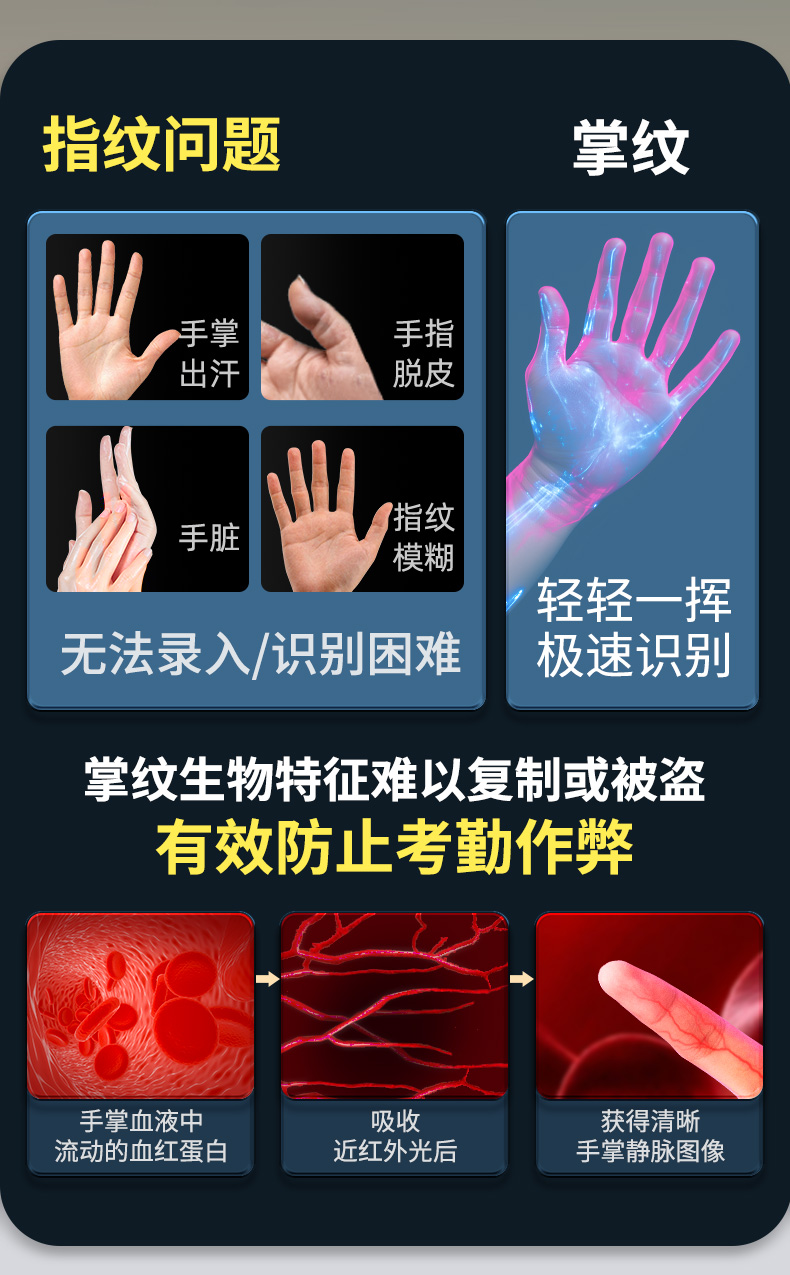 PV20W打卡機(jī)人臉+掌紋識別考勤機(jī)
