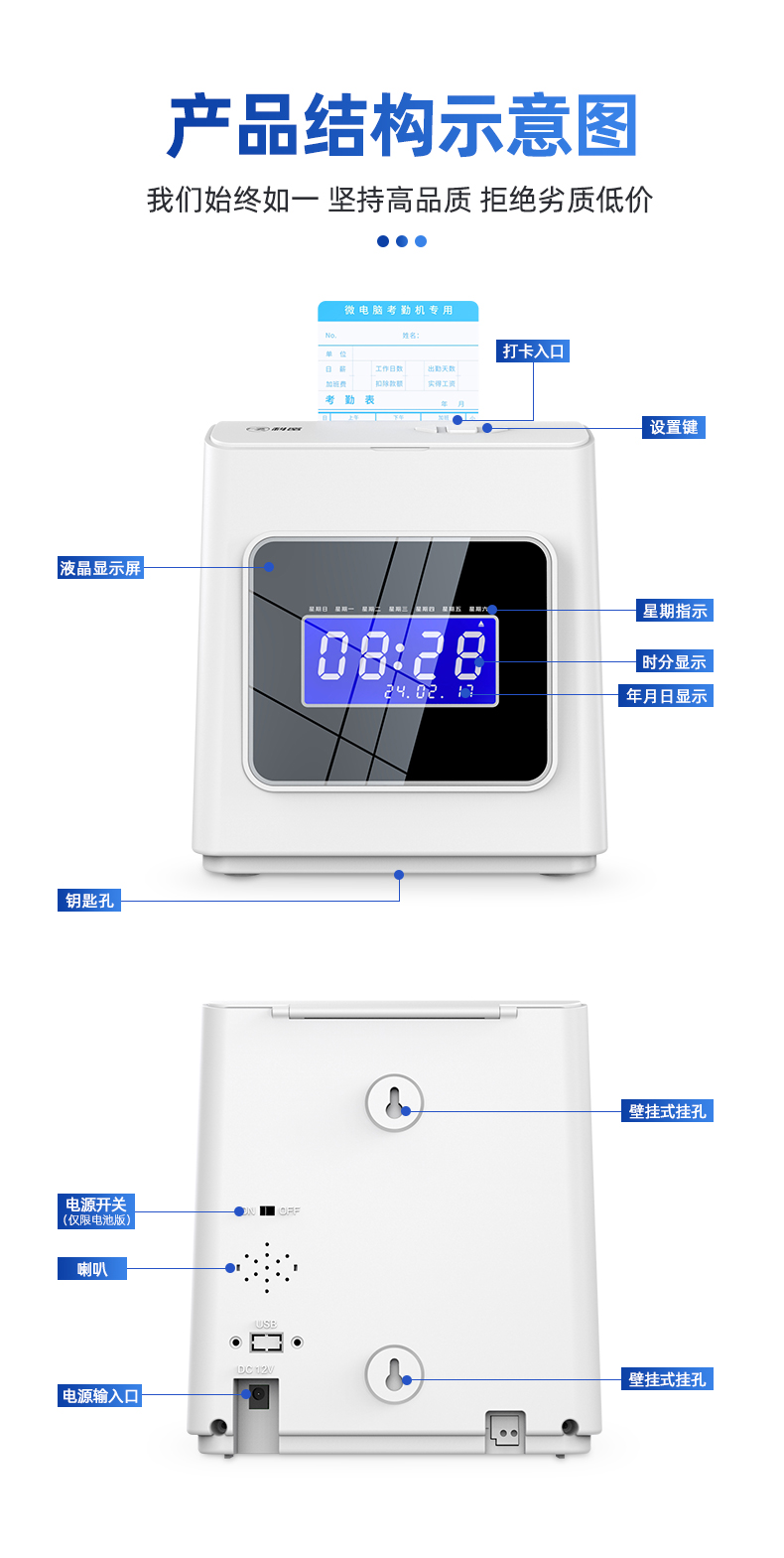 科密(comet)打卡機考勤機卡鐘紙質考勤鐘音樂報時快速打卡微電腦自動吸退移位 可停電打卡款 ET-3318D