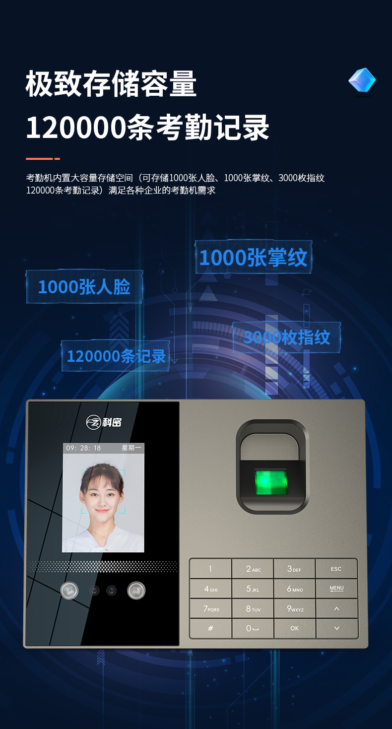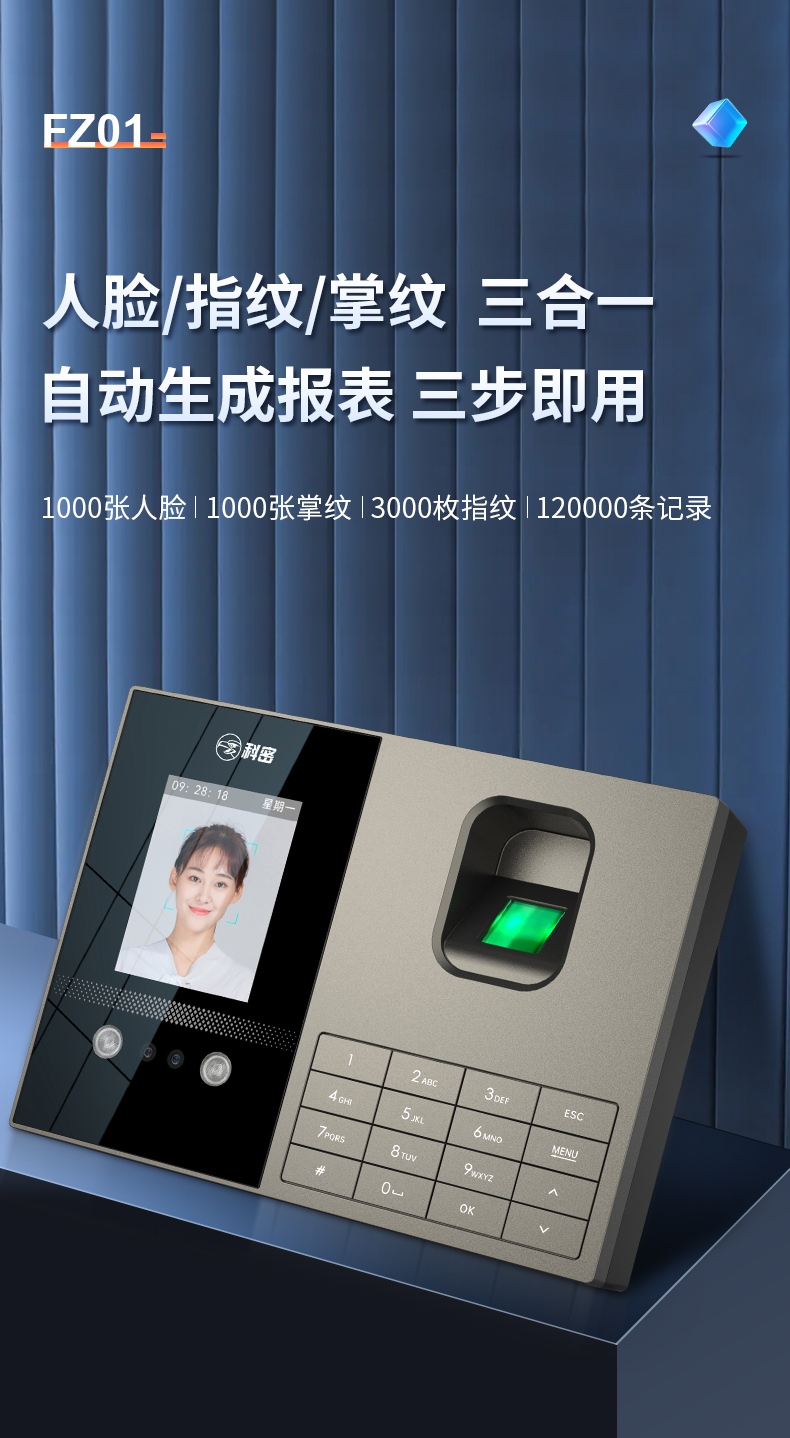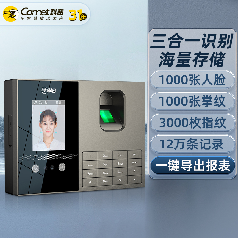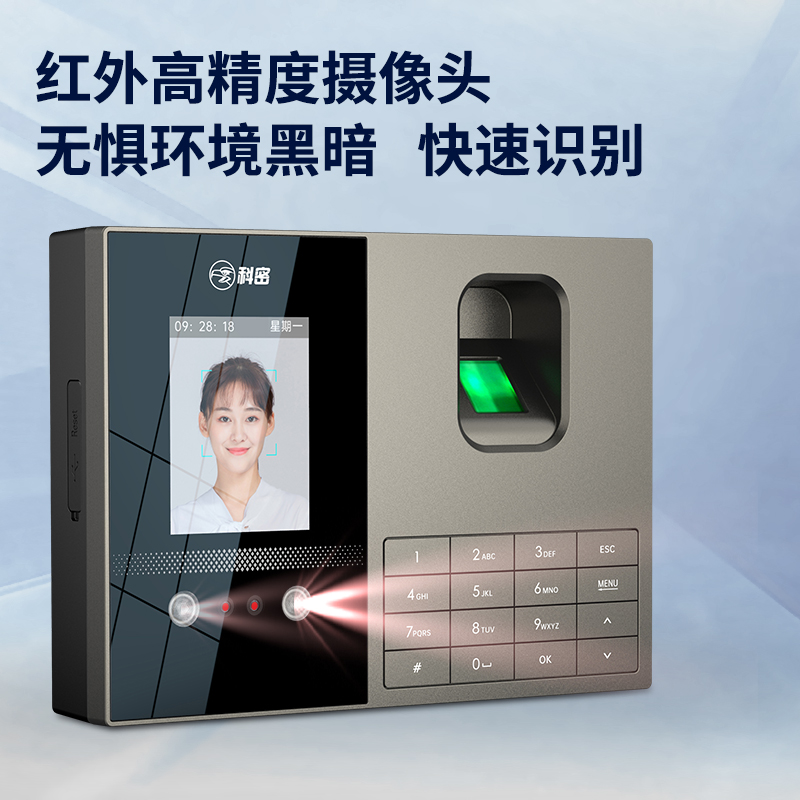 科密考勤機(jī) 打卡機(jī)人臉+指紋 掌靜脈識(shí)別 免網(wǎng)絡(luò)免軟件 大容量設(shè)置簡(jiǎn)單 自動(dòng)生成報(bào)表考勤機(jī)FZ01