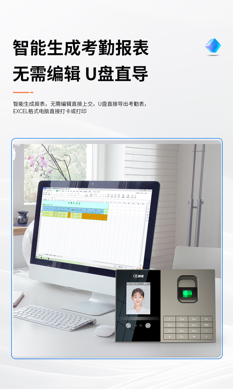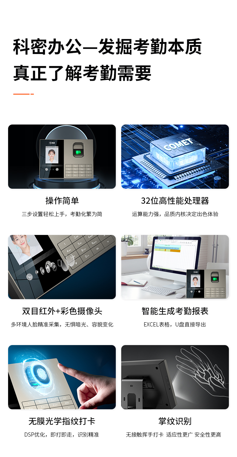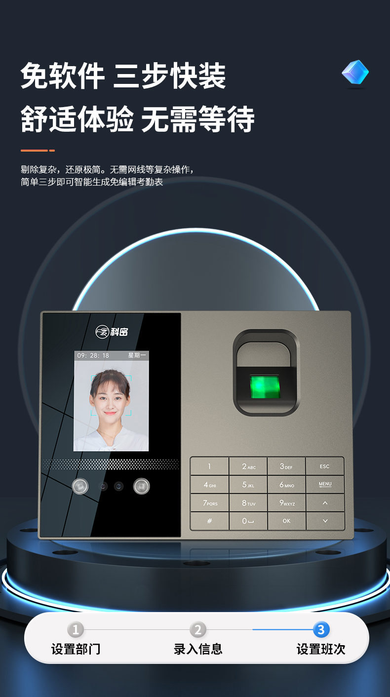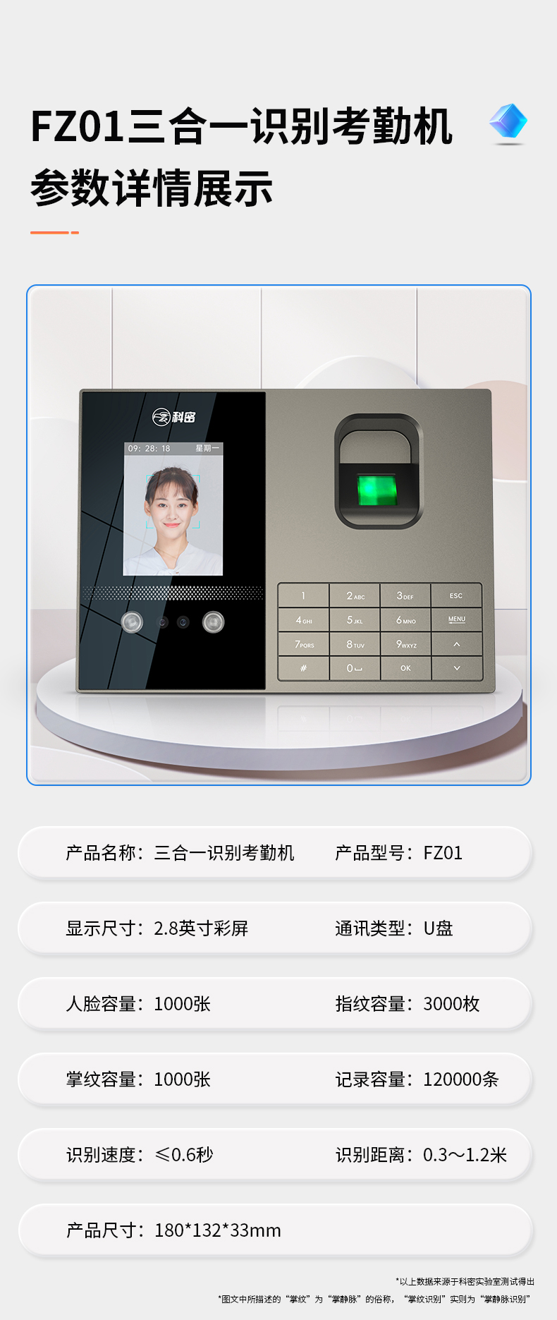 科密考勤機(jī) 打卡機(jī)人臉+指紋 掌靜脈識(shí)別 免網(wǎng)絡(luò)免軟件 大容量設(shè)置簡(jiǎn)單 自動(dòng)生成報(bào)表考勤機(jī)FZ01