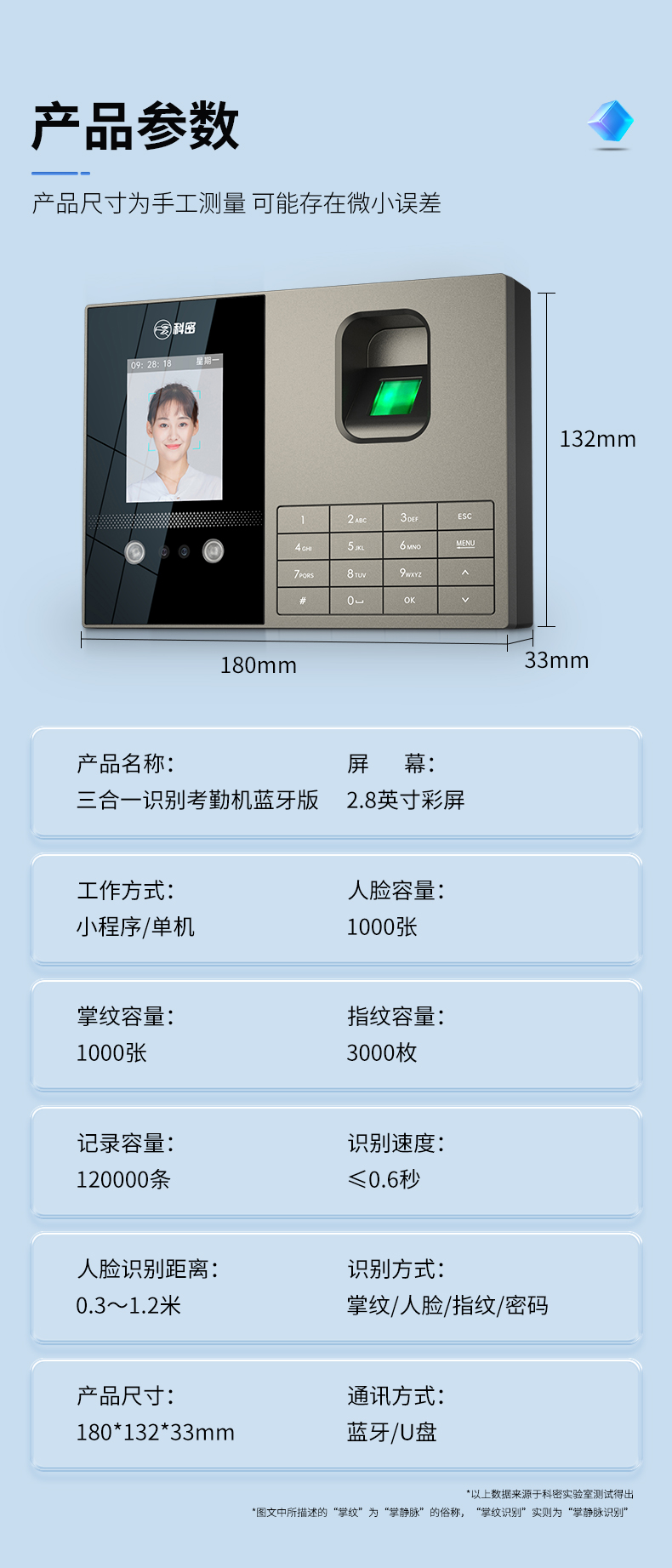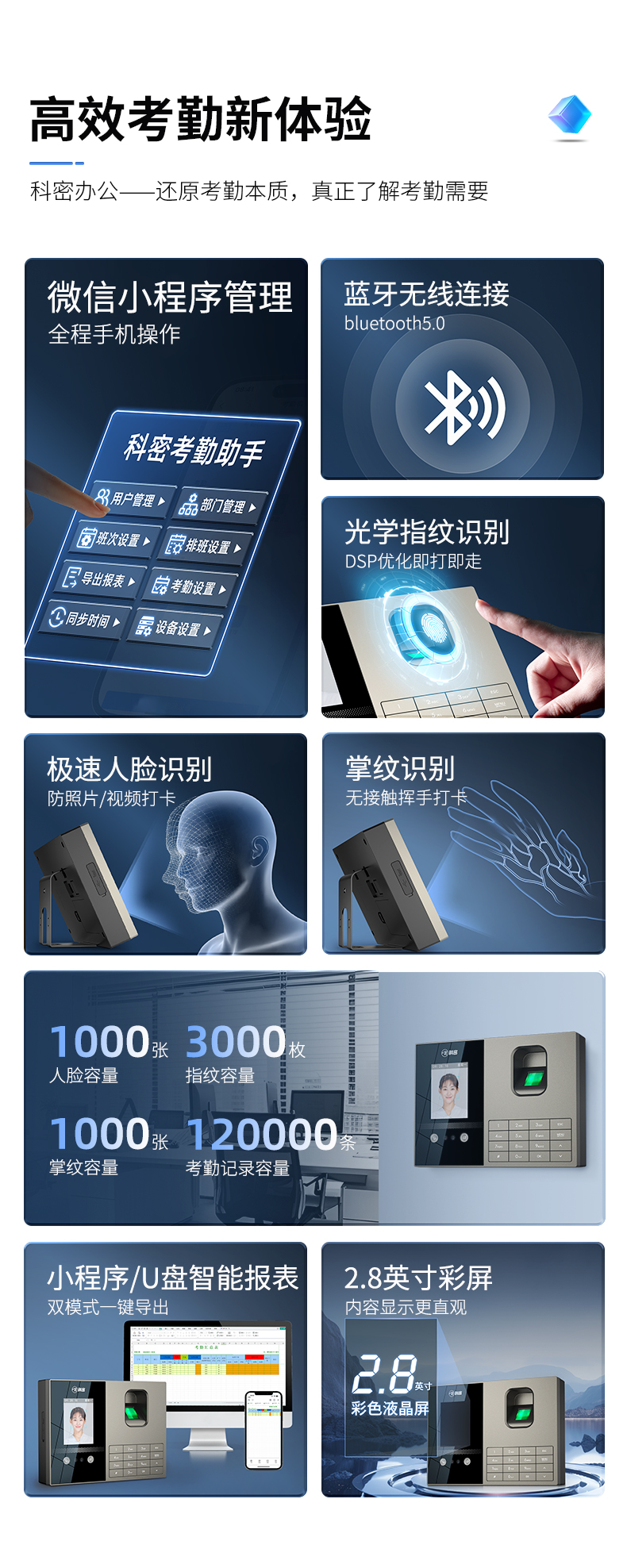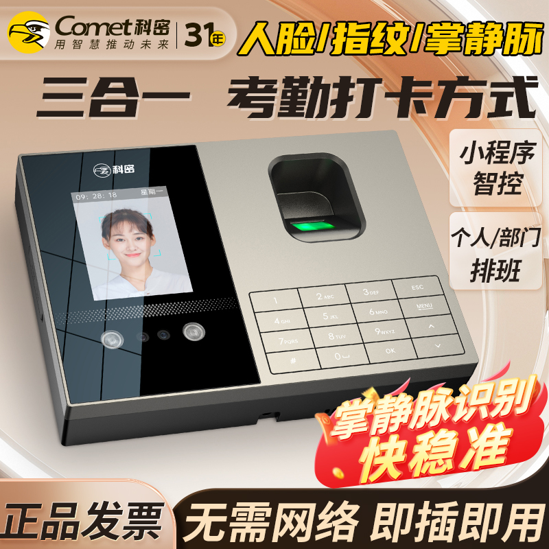 科密(comet)考勤機(jī) 打卡機(jī)人臉+指紋掌靜脈識別考勤機(jī) 藍(lán)牙連接 小程序管理 自動生成報(bào)表FZ03