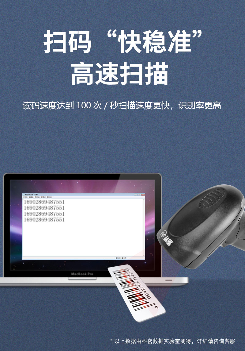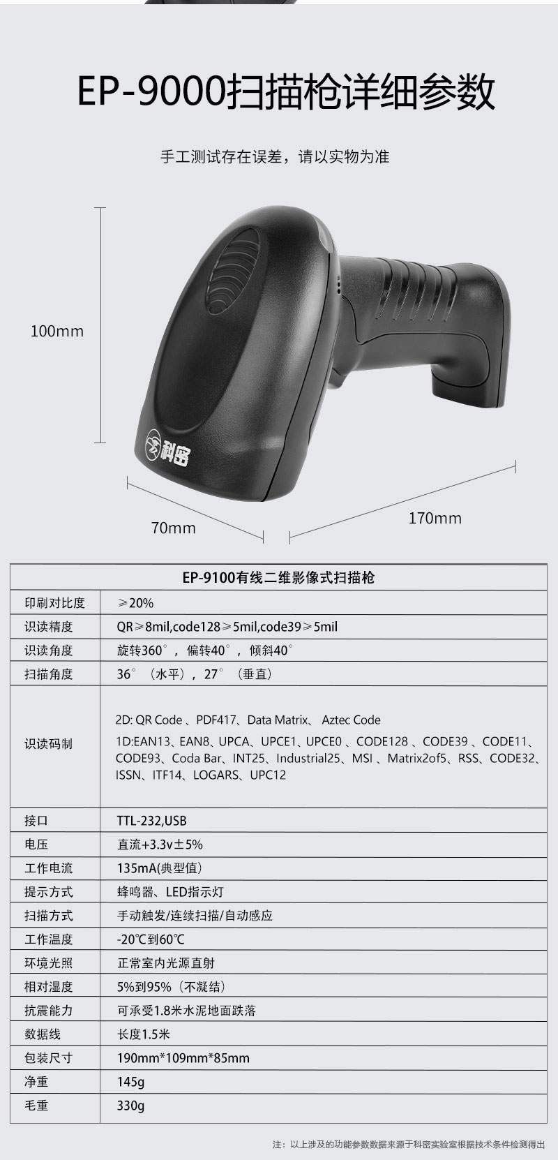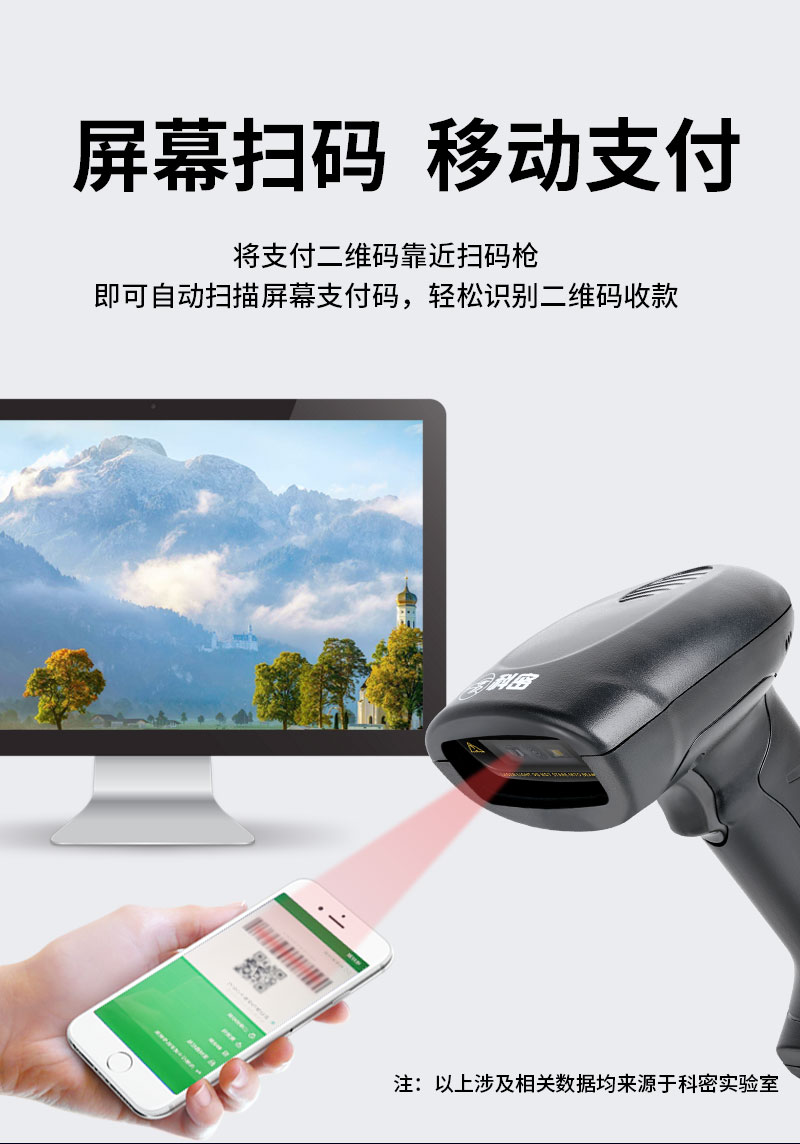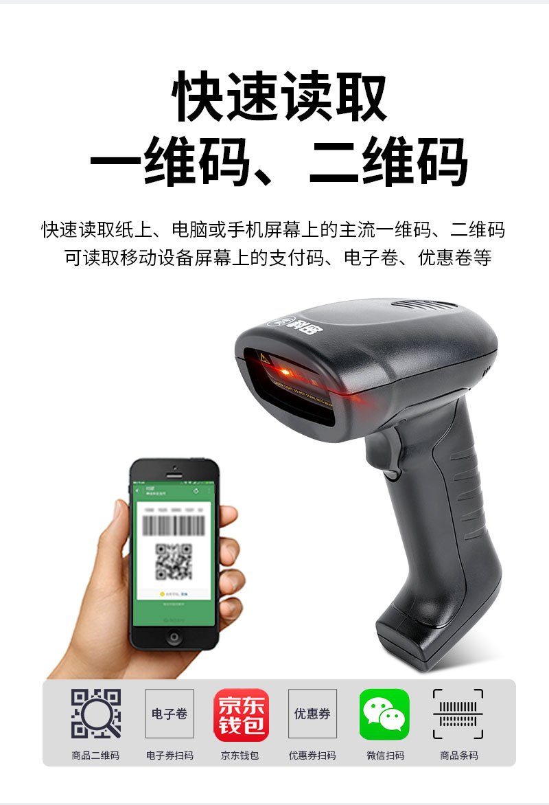 科密 EP-9100 一二維碼條碼槍 有線掃碼槍 商超收銀支付倉庫盤點快遞出入庫 可定制