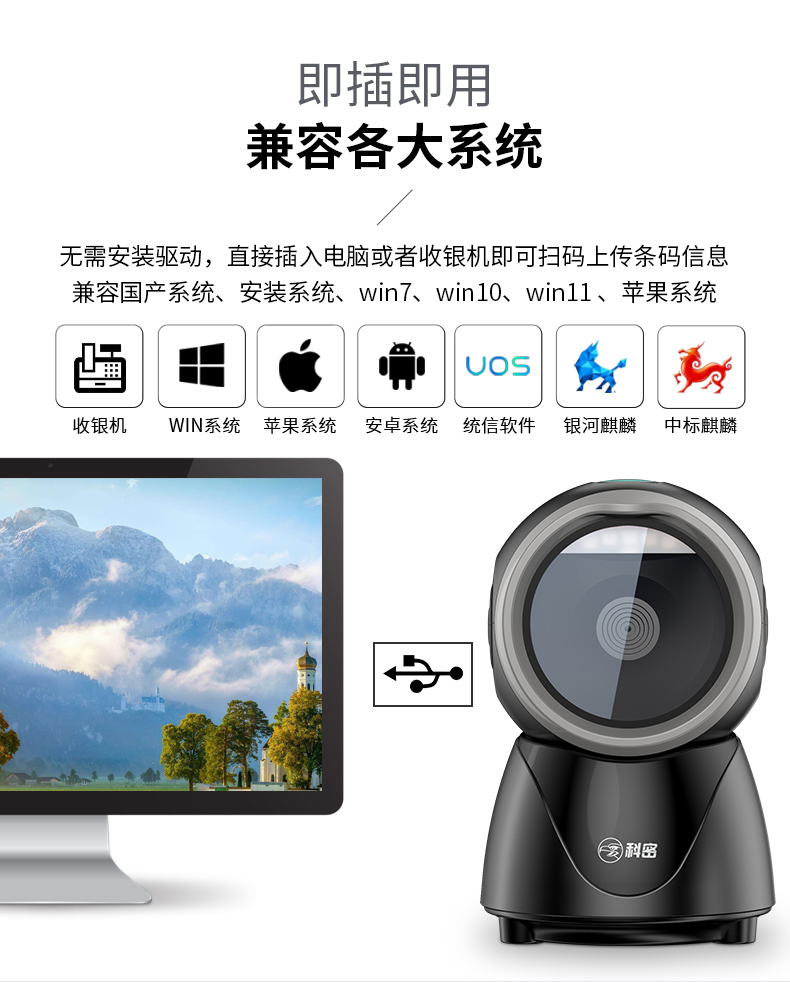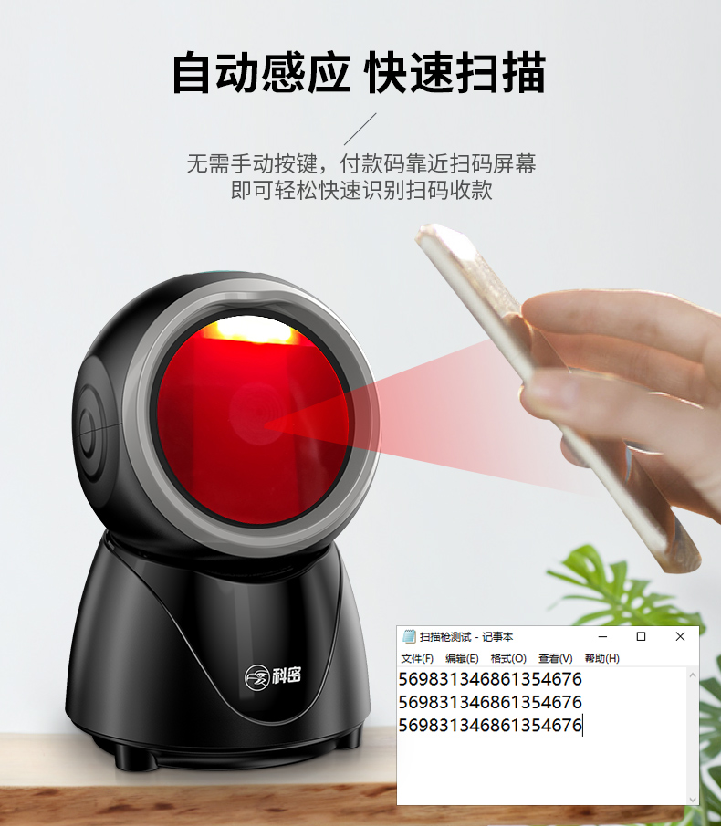 科密掃碼槍 條形碼 二維碼掃描槍 藥店商超零售收款 貨品條碼掃碼器 支付掃碼盒子PT-168 支持屏幕碼
