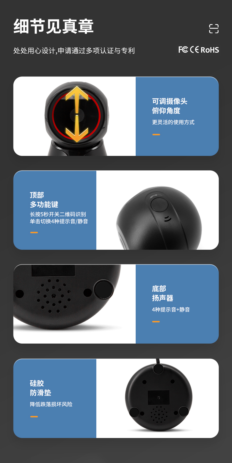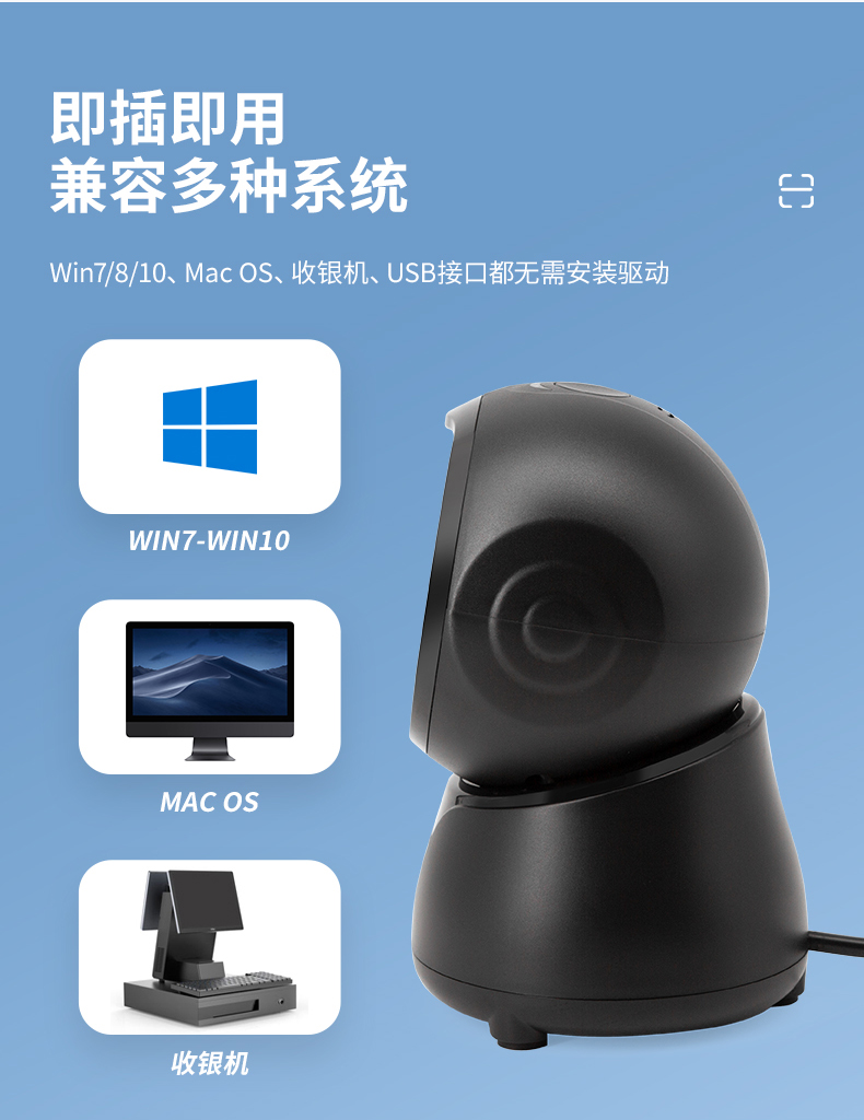 商用收款掃碼機(jī)一體機(jī)快速通用掃描槍一維二維碼支付收銀掃碼槍