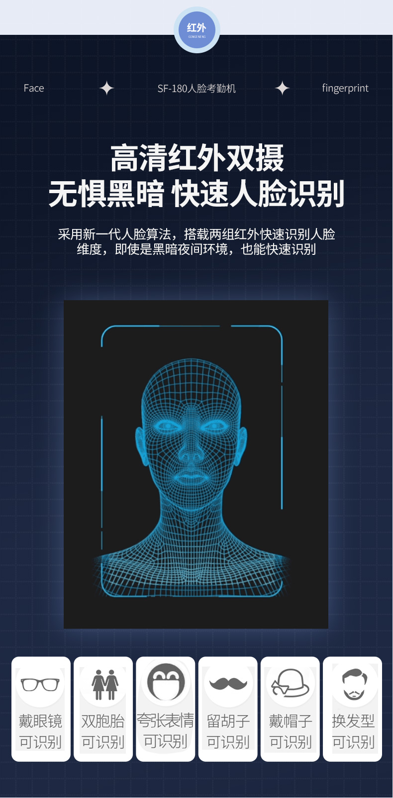 SF-180人臉指紋混合識(shí)別考勤機(jī)