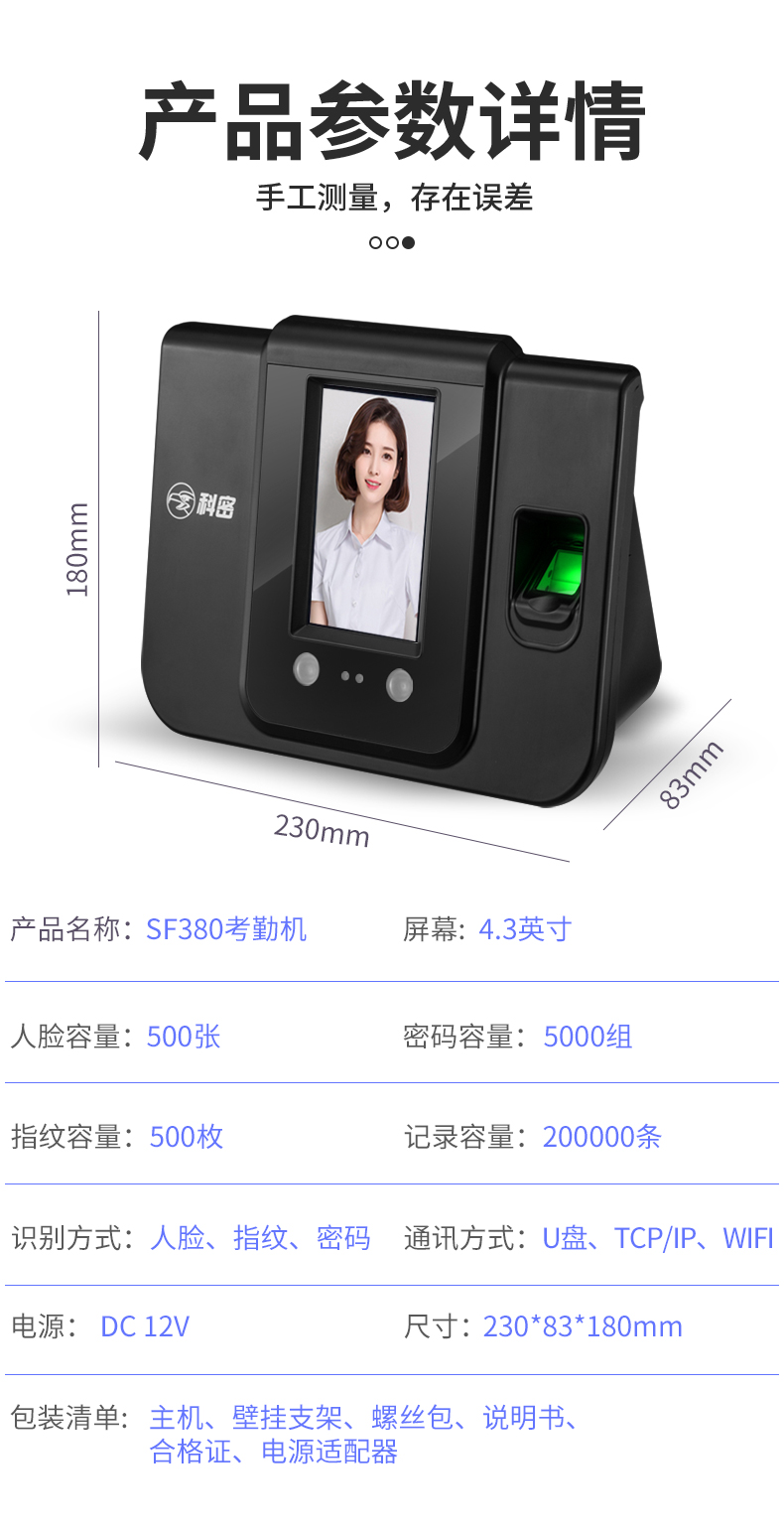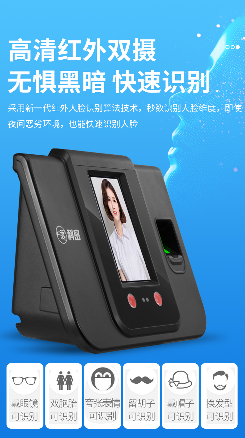 科密(comet) 人臉指紋混合識別考勤機(jī) 面部臉部識別考勤機(jī) 帶一卡通考勤軟件SF-380 500人臉 5000指紋 SF-380