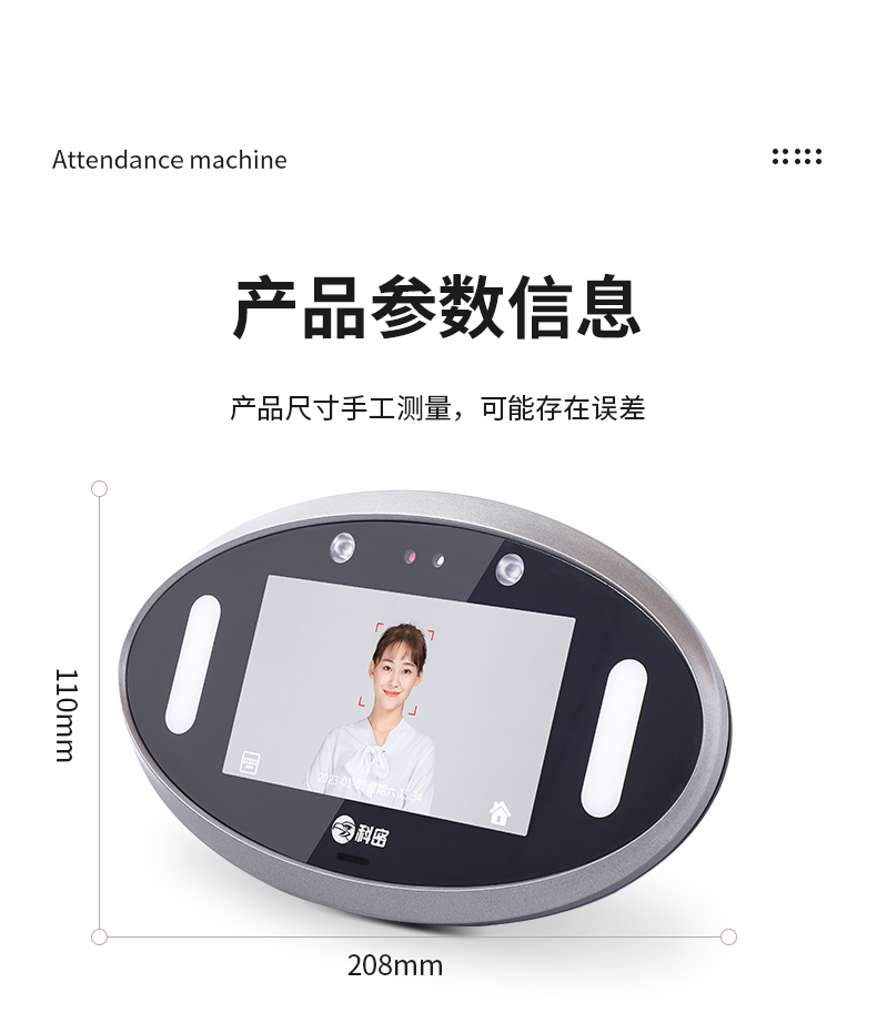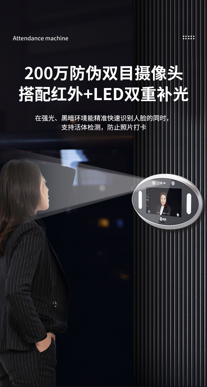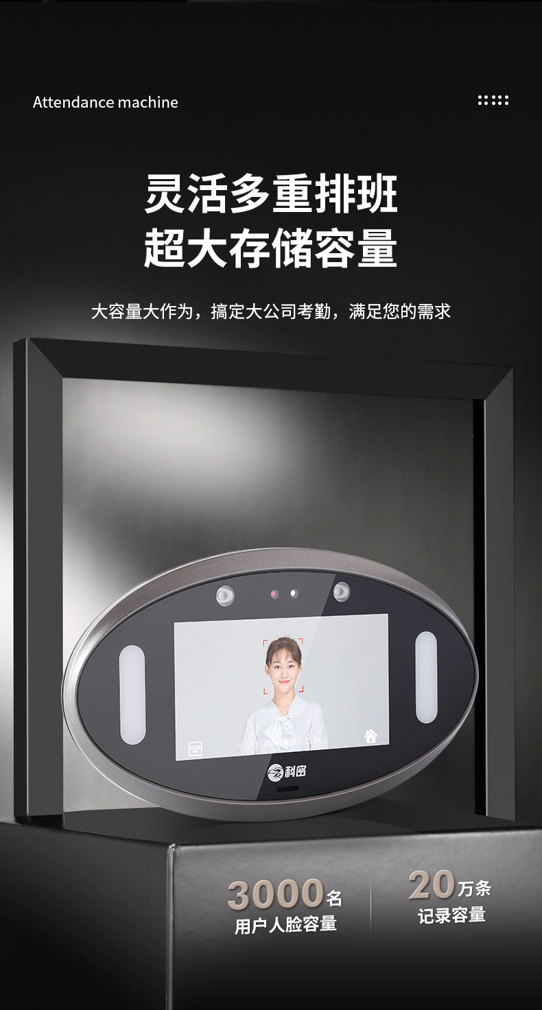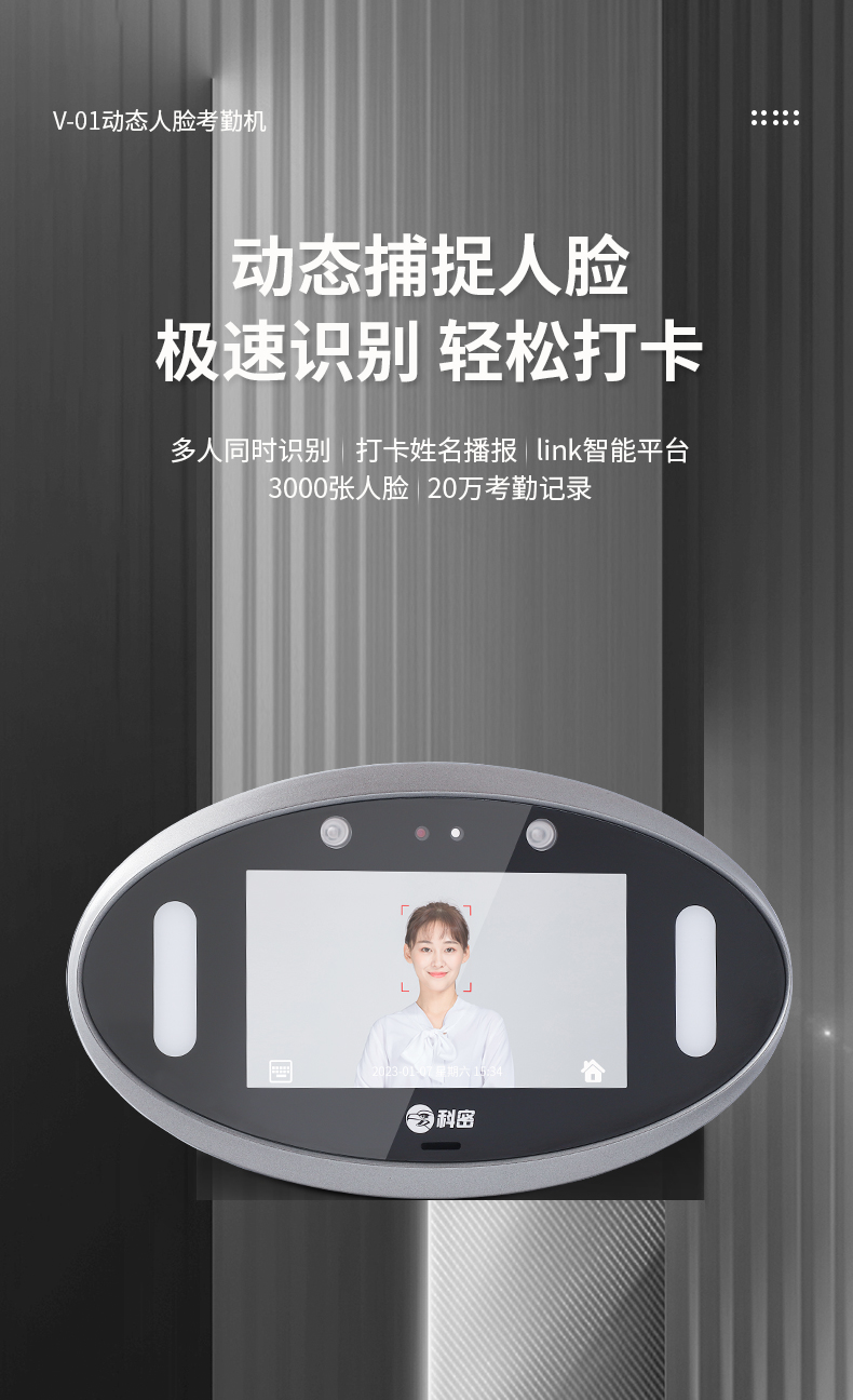 科密 V-01 動態(tài)人臉識別考勤機 打卡神器 上下班刷臉面部識別簽到器 人臉門禁系統(tǒng)一體機